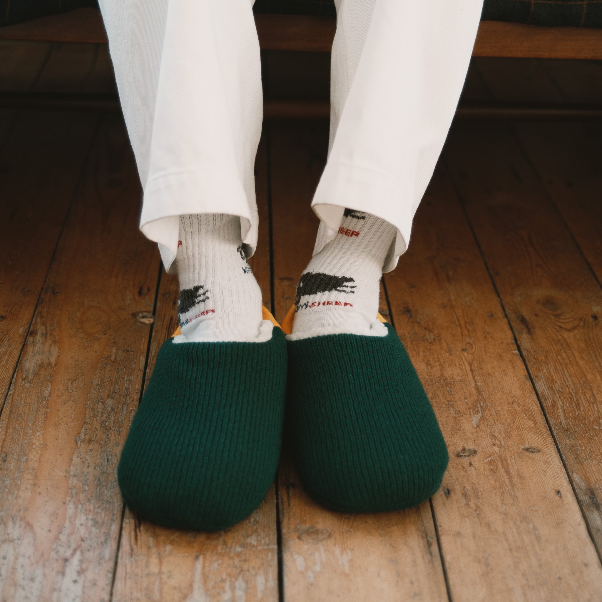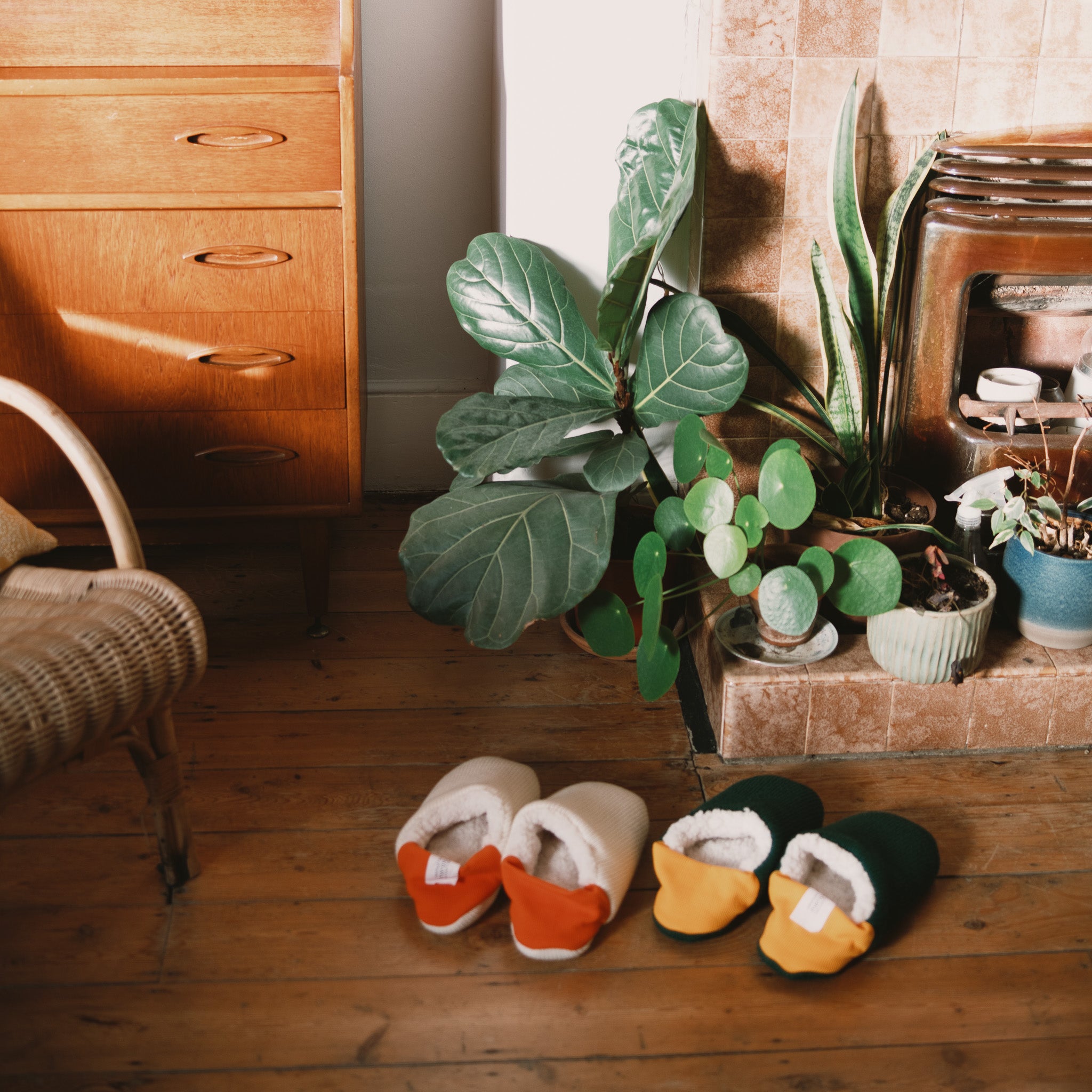 Merippa creates playful, comfortable house shoes that are "like slippers, but not slippers." Each pair is hand-finished, ultra light, reversible, and designed to radiate warmth in both appearance and feel.