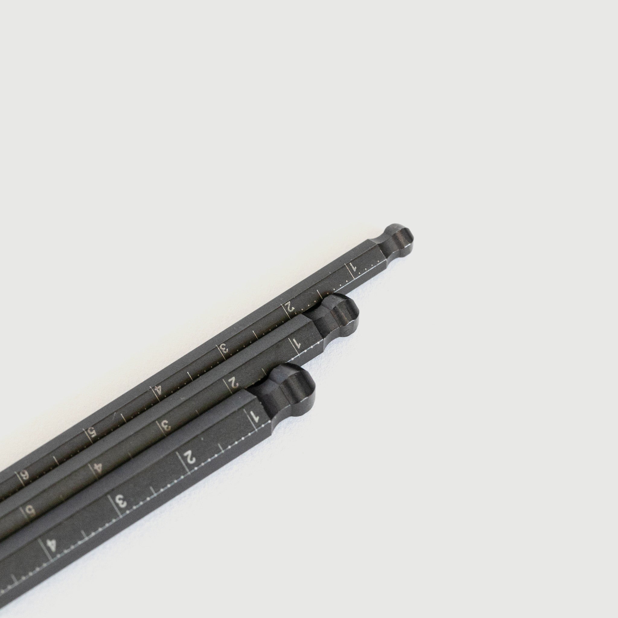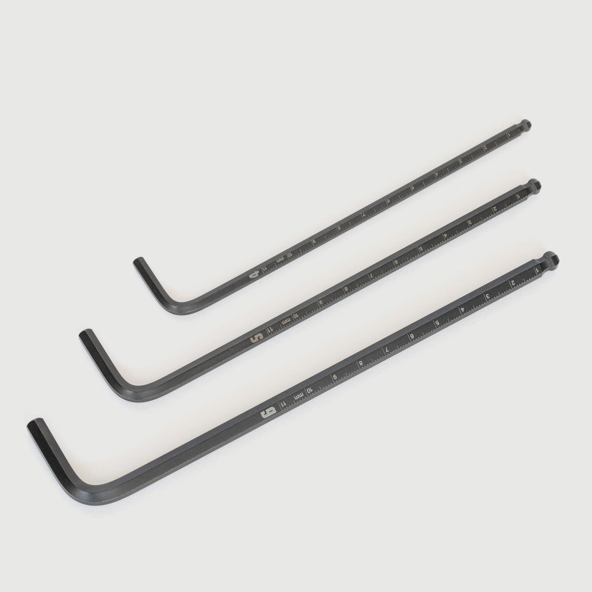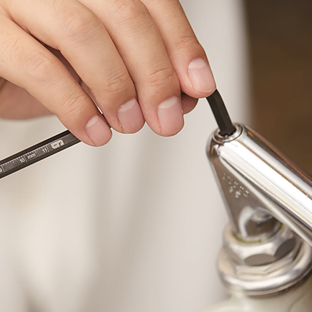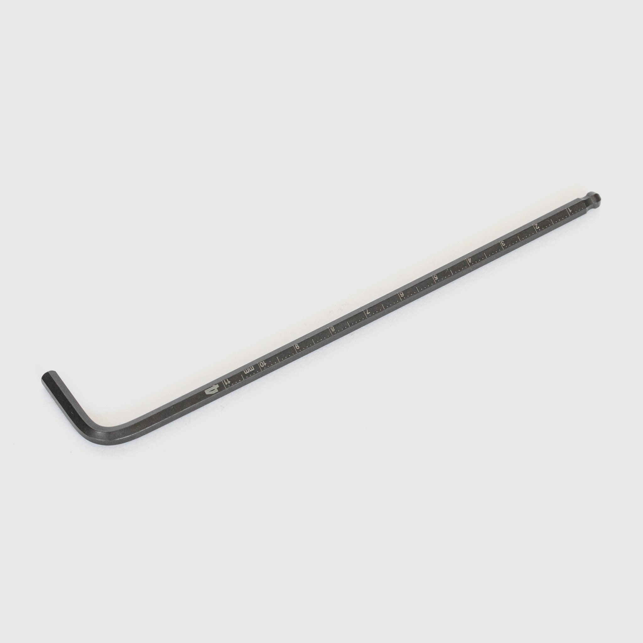 The Runwell Mex Hex Wrench is a ball-hex allen key combined with a metric ruler. Measuring up to 110 mm from the ball-end tip, the large size markings enables you to confirm sizes easily.