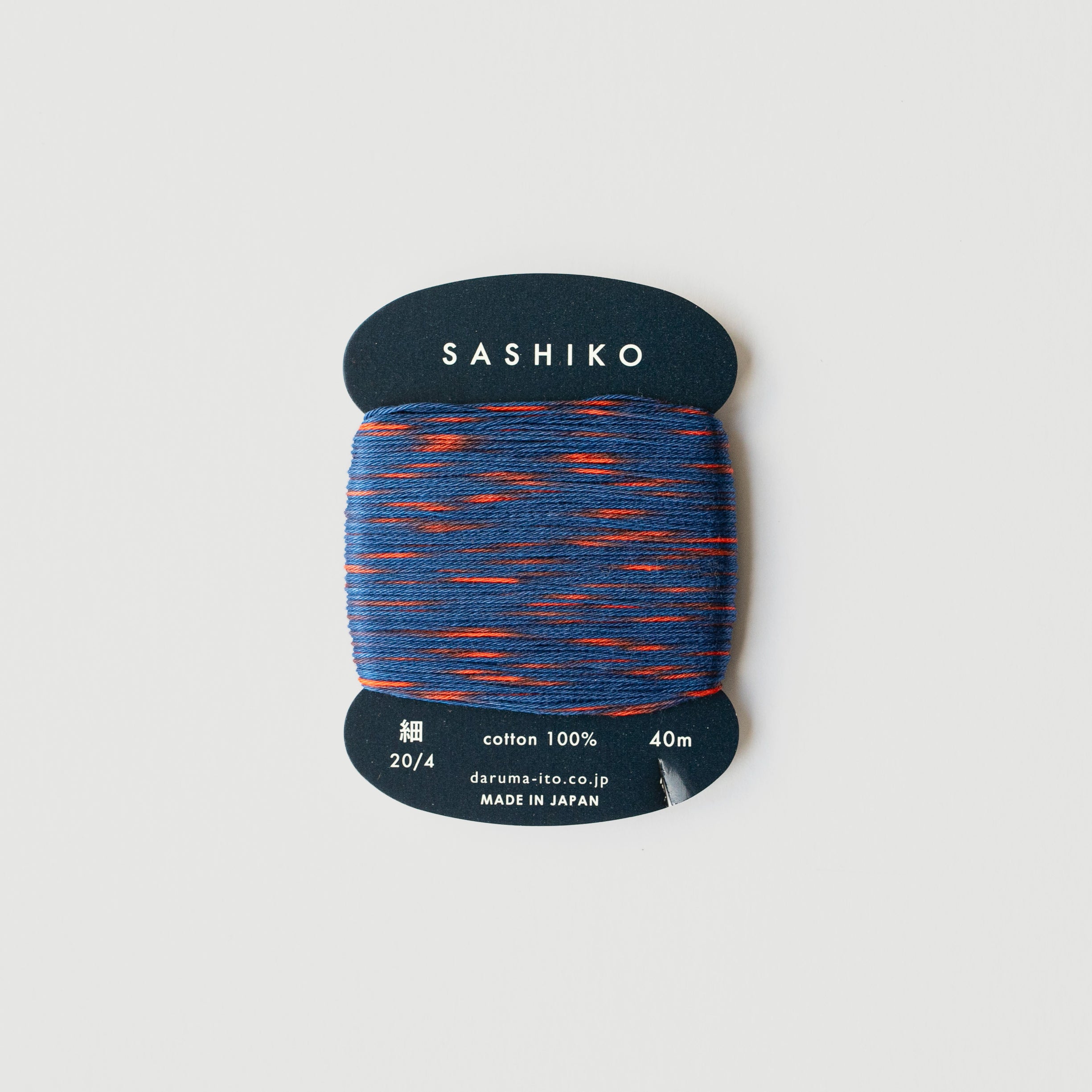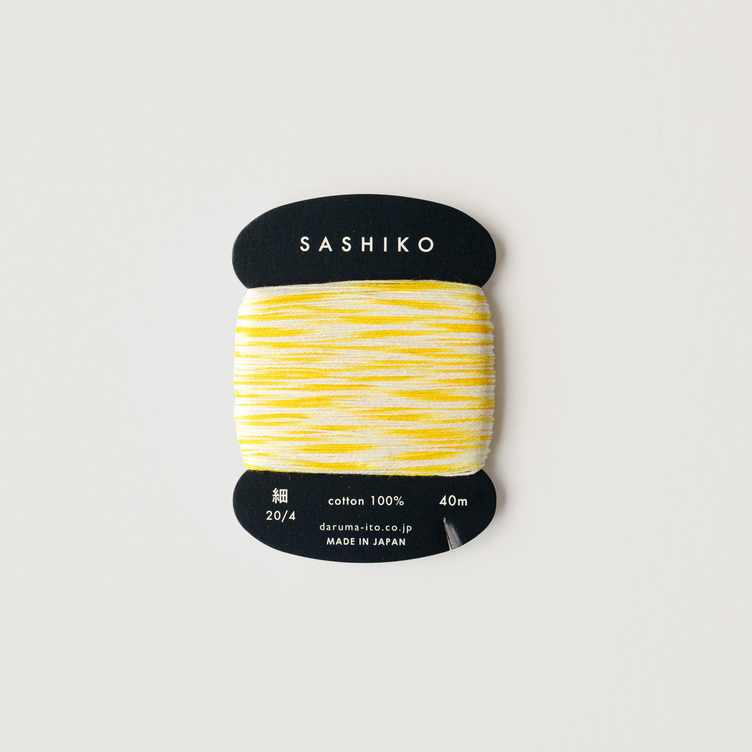 This high-strength, fine cotton thread is made by the heritage Japanese brand Daruma-Ito. Using a resist yarn-dyeing technique, the thread features beautifully dotted colors that emerge uniquely as you stitch. It is ideal for Sashiko, darning, embroidery, and other decorative stitching, with running stitch especially recommended to highlight the vibrant effects. The brilliant color variations are inspired by traditional Japanese summer festivals.
