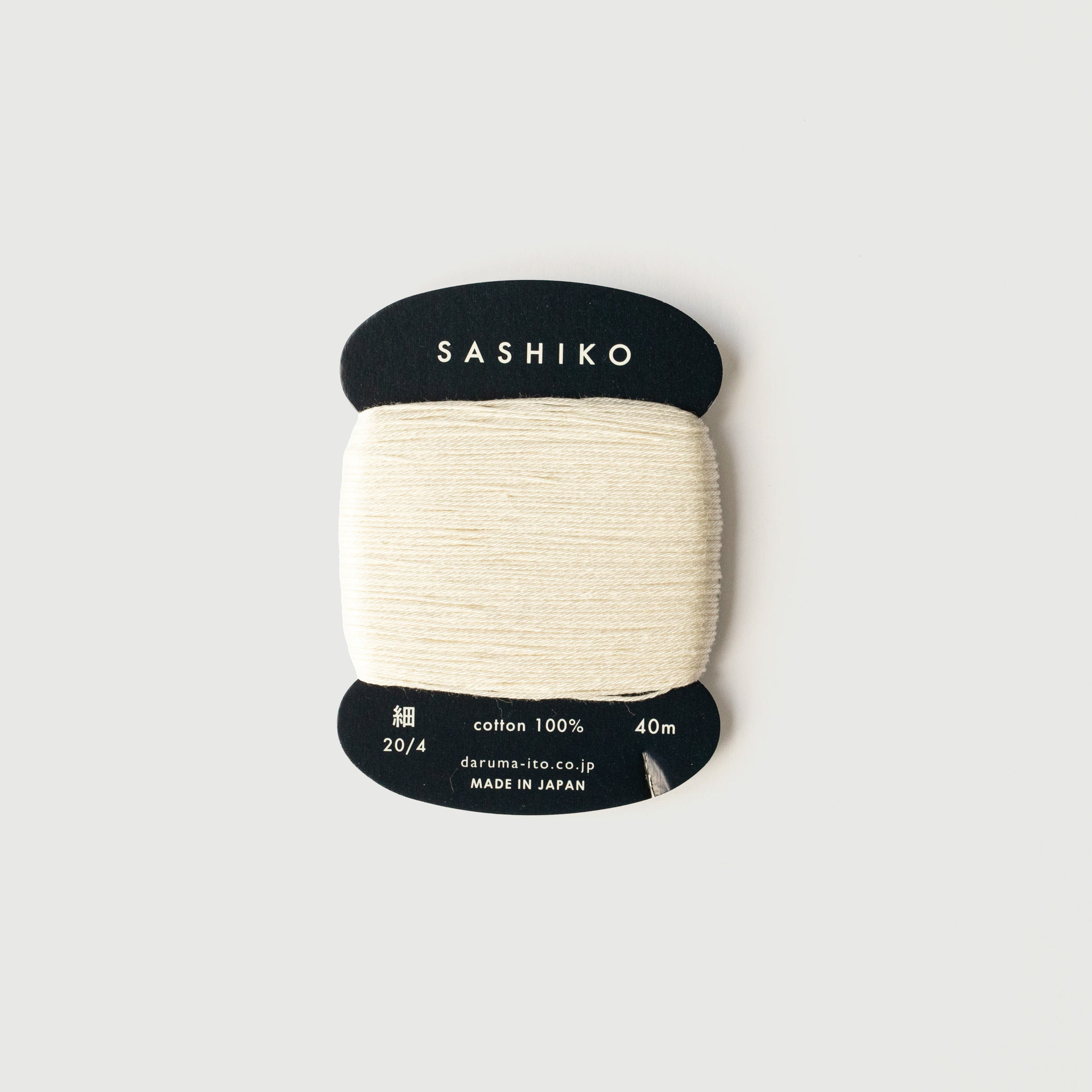 This high-strength, fine cotton thread is made by the heritage Japanese brand Daruma-Ito. Sashiko Thin is the most basic type, twisted from four threads, making it suitable for a wide range of needlework including Sashiko, darning, embroidery, and other decorative stitching. It works well for both detailed patterns and larger designs. The convenient card format allows you to cut the thread to your desired length and store it neatly.