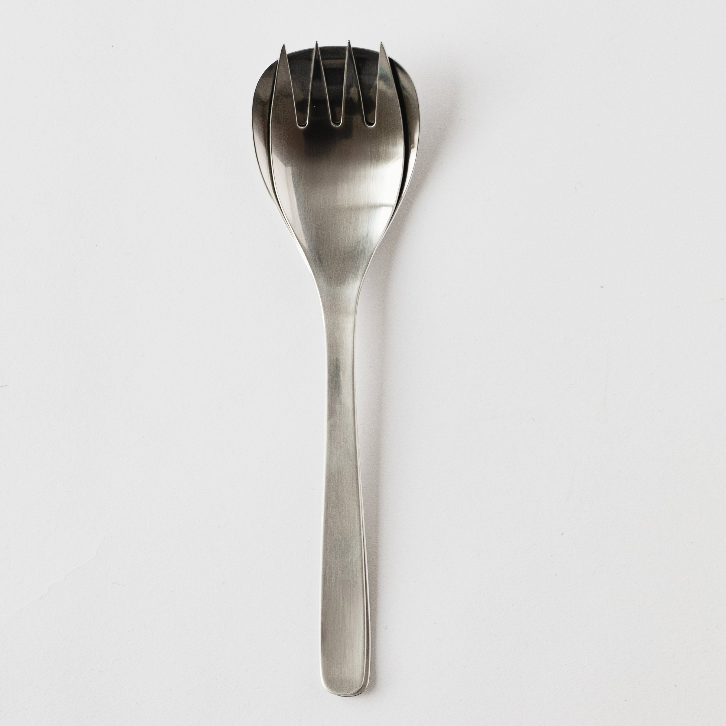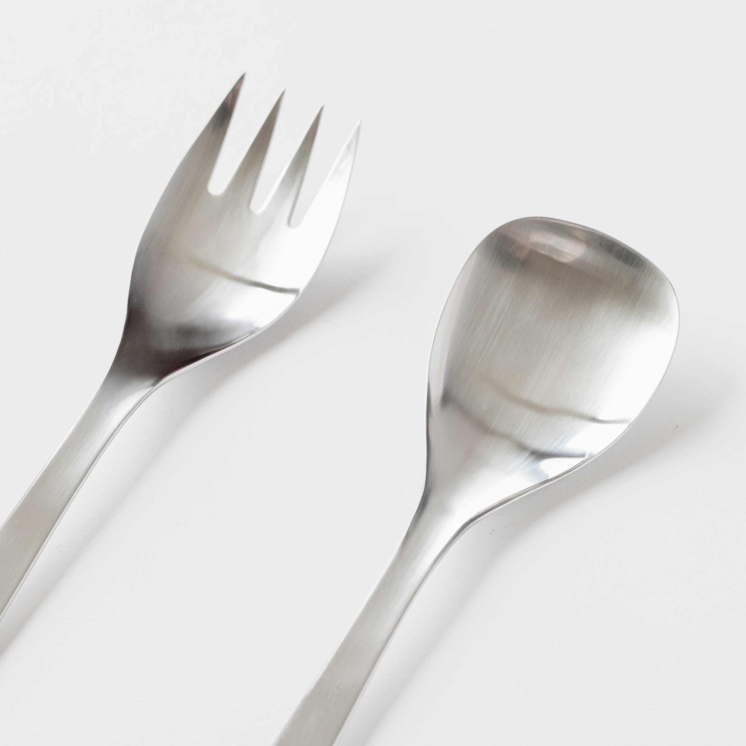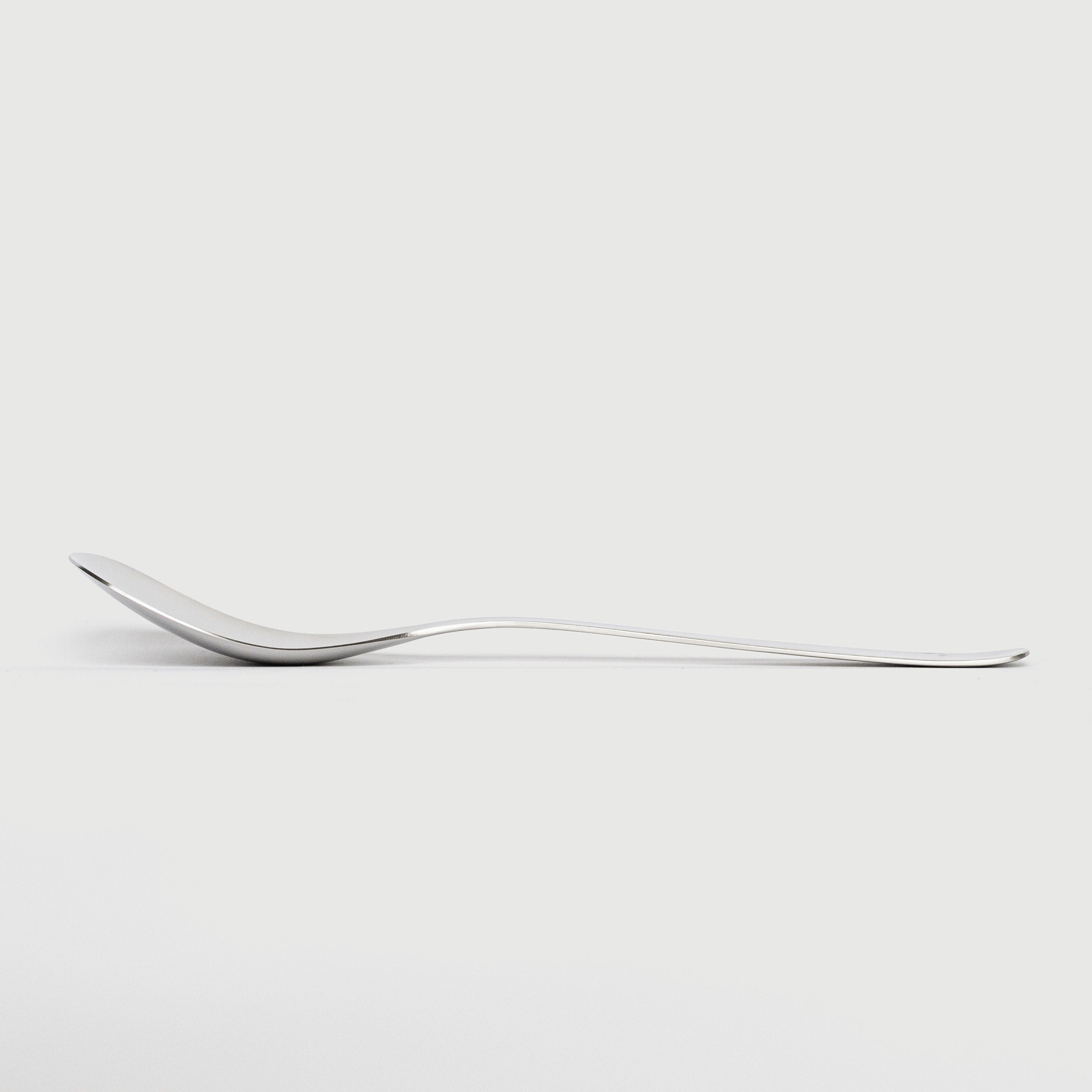 A set of stainless steel serving utensils that form part of a series of kitchenware, produced in Tsubame City, Niigata Prefecture, and that won the Good Design award. There is a sculptural but functional form that creates a timeless design.
