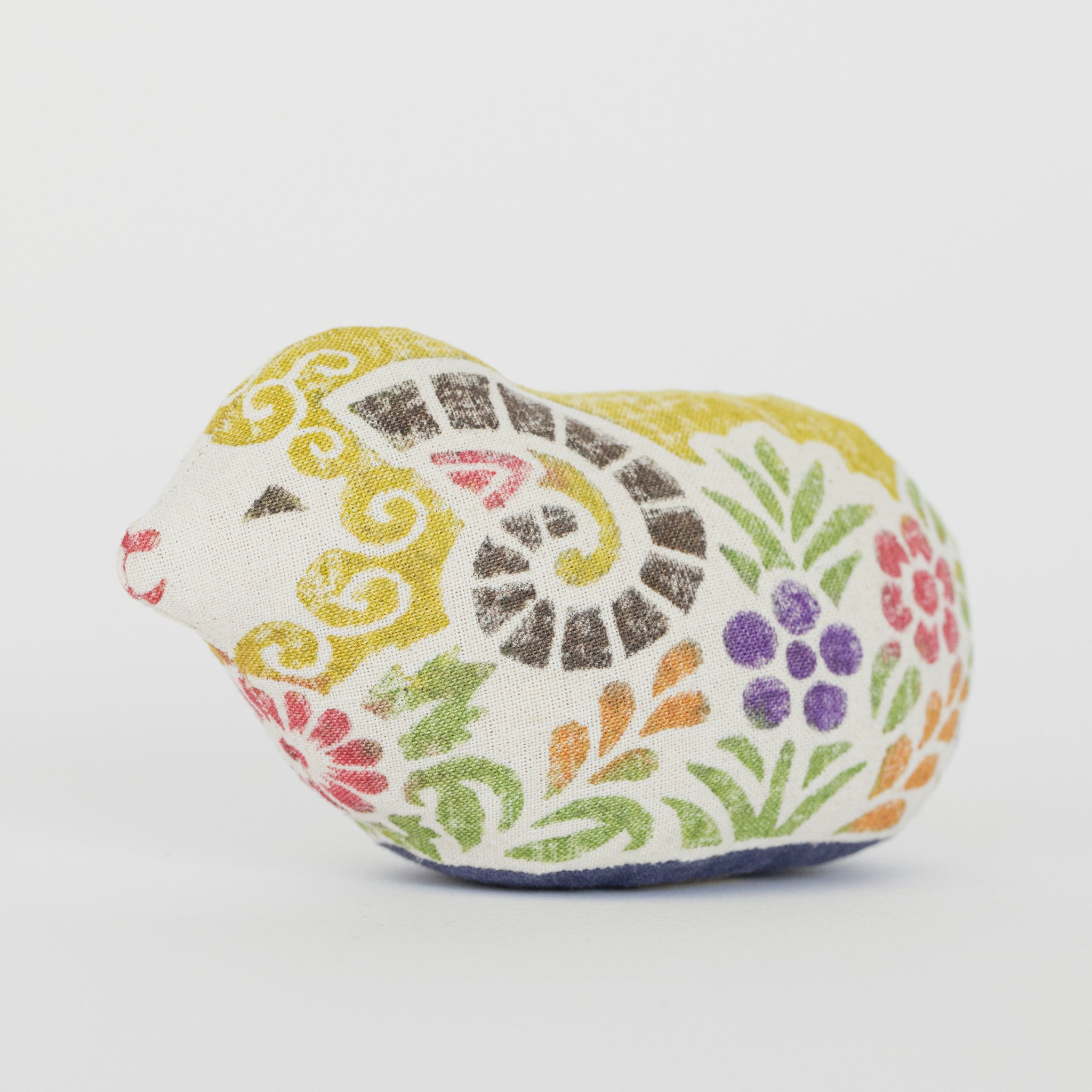 Based in Hida-Takayama, Gifu prefecture, Shin Kogei specializes in woodblock prints of local animals. Utilizing wood from the region, they meticulously carve designs inspired by Hida-Takayama's fauna onto blocks, which are then hand-dyed onto natural cotton. Each color represents a separate block, showcasing the intricate craftsmanship. Their prints, including baby animals, birds, and fish, are filled with rustic charm and hand-sewn.