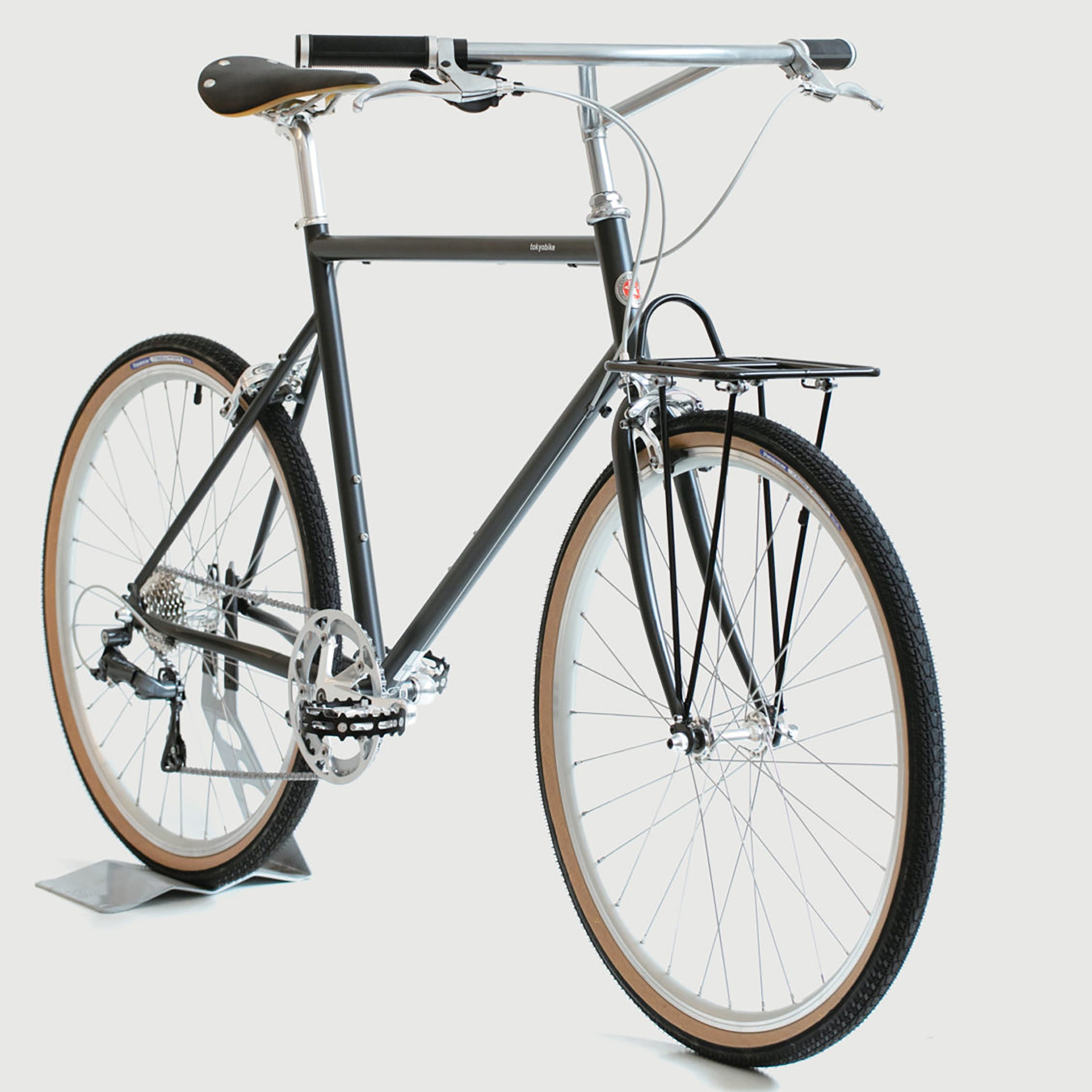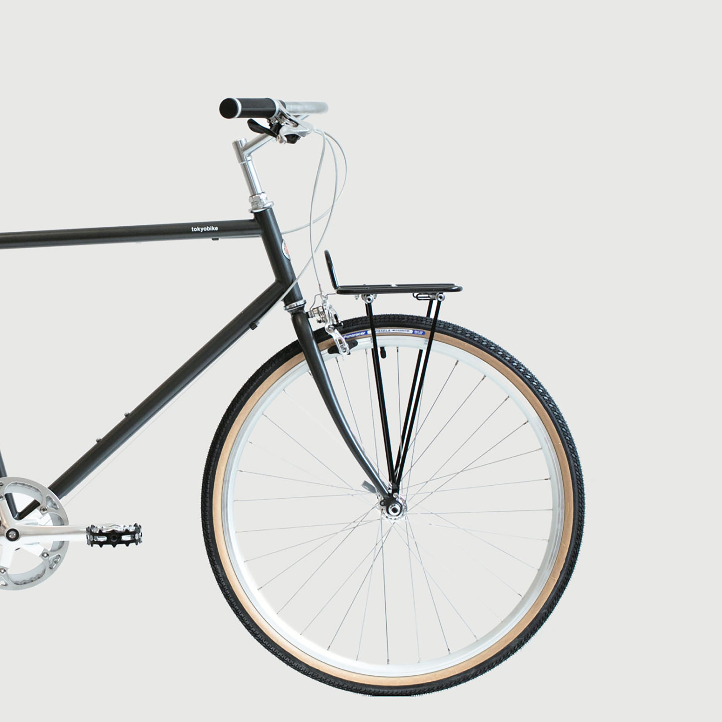 Simple form and function for daily use and light touring. Manufactured by Nitto and designed by Sim Works, this diminutive front rack is capable of supporting a handlebar bag or a light load secured with a strap. The long support stays mean there is no need for eyelets if you don’t have them. Secure your Obento lunch box and head for the hills!