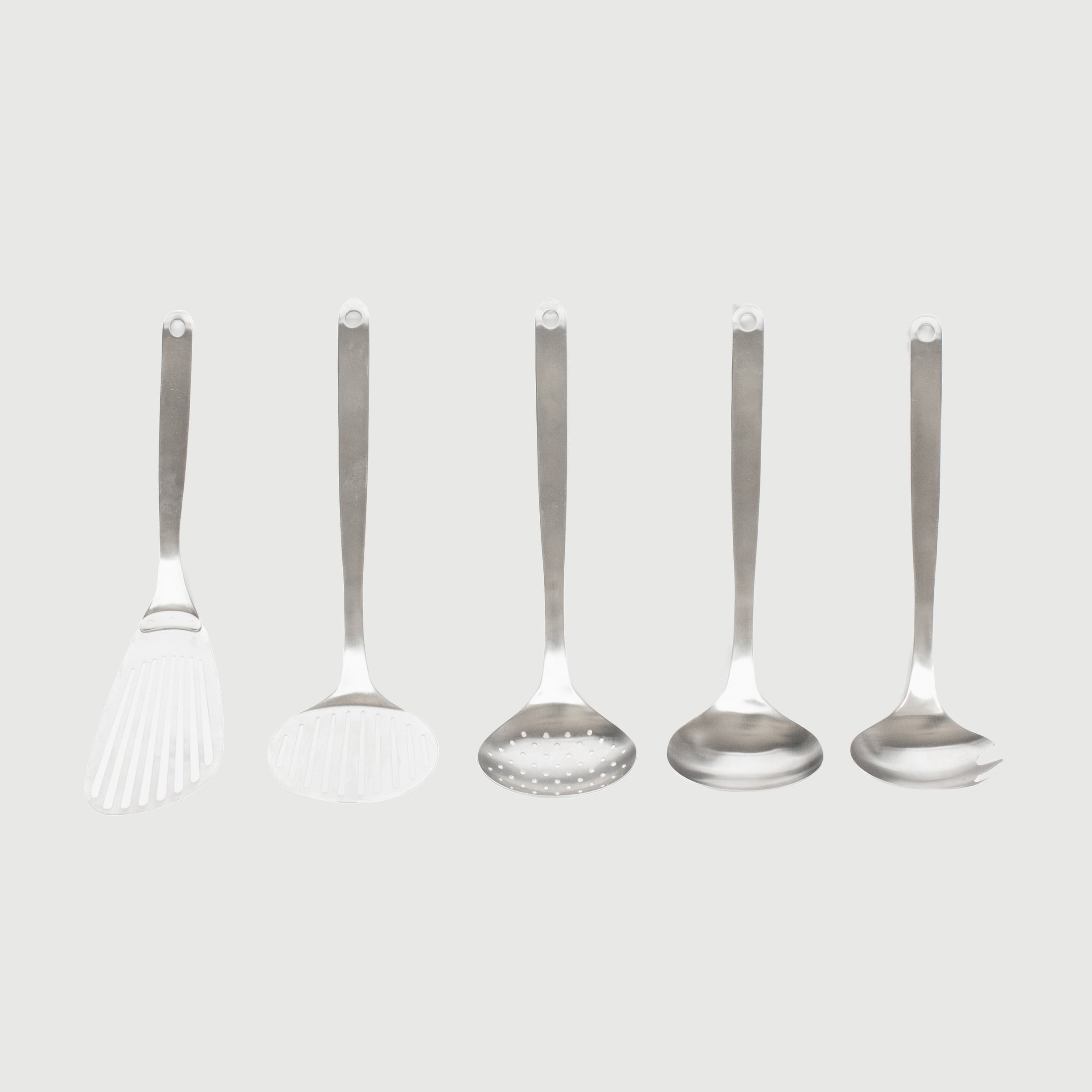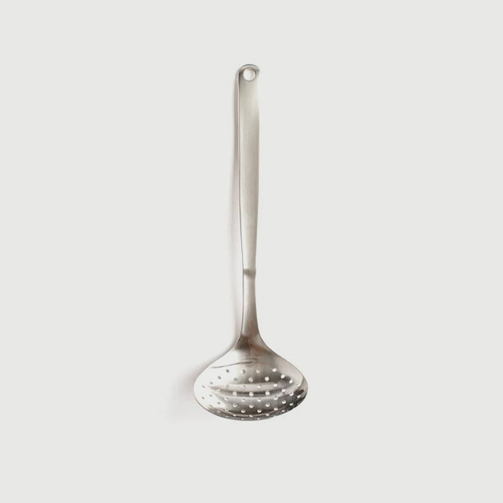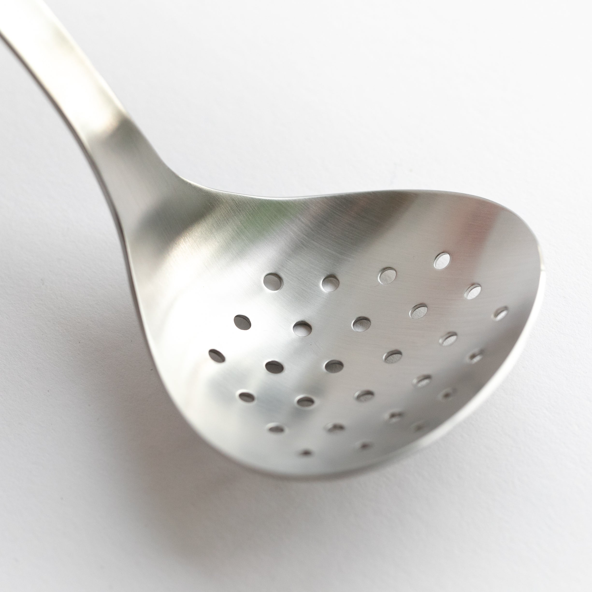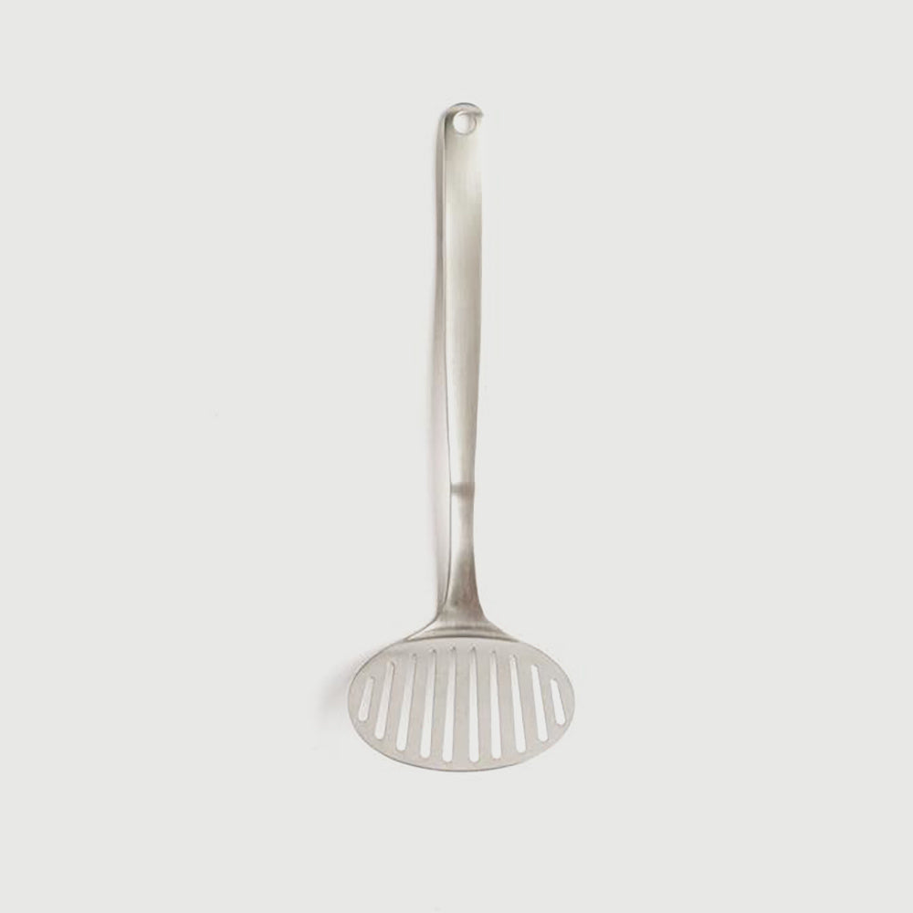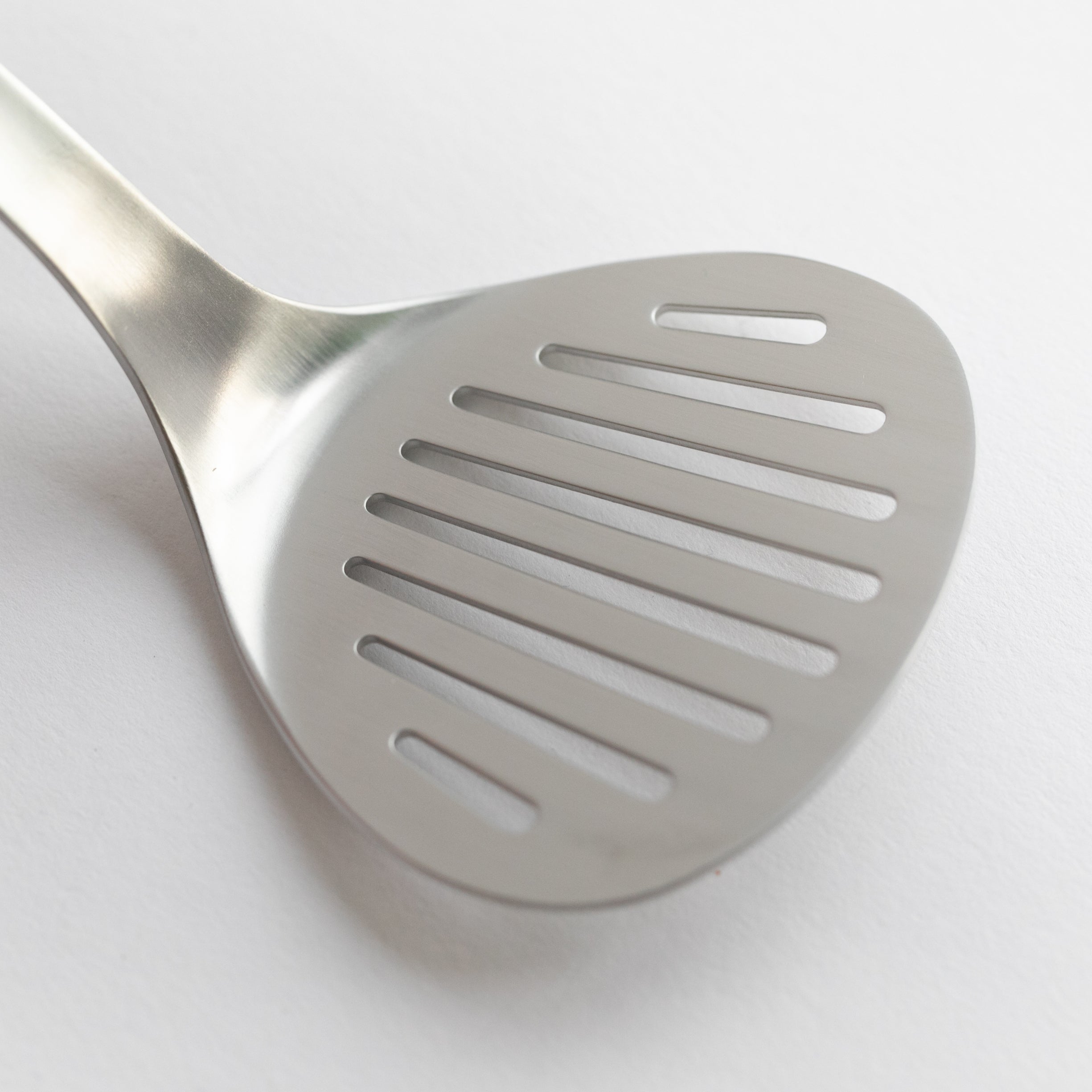Sori Yanagi's Kitchen Tools are known for their simplicity, practicality and quality. The handle is designed with a slight curve for an ergonomic feel and a hole at the end to allow for neat storage when not in use. Made from stainless steel they are durable and easy to clean (dishwashers safe).