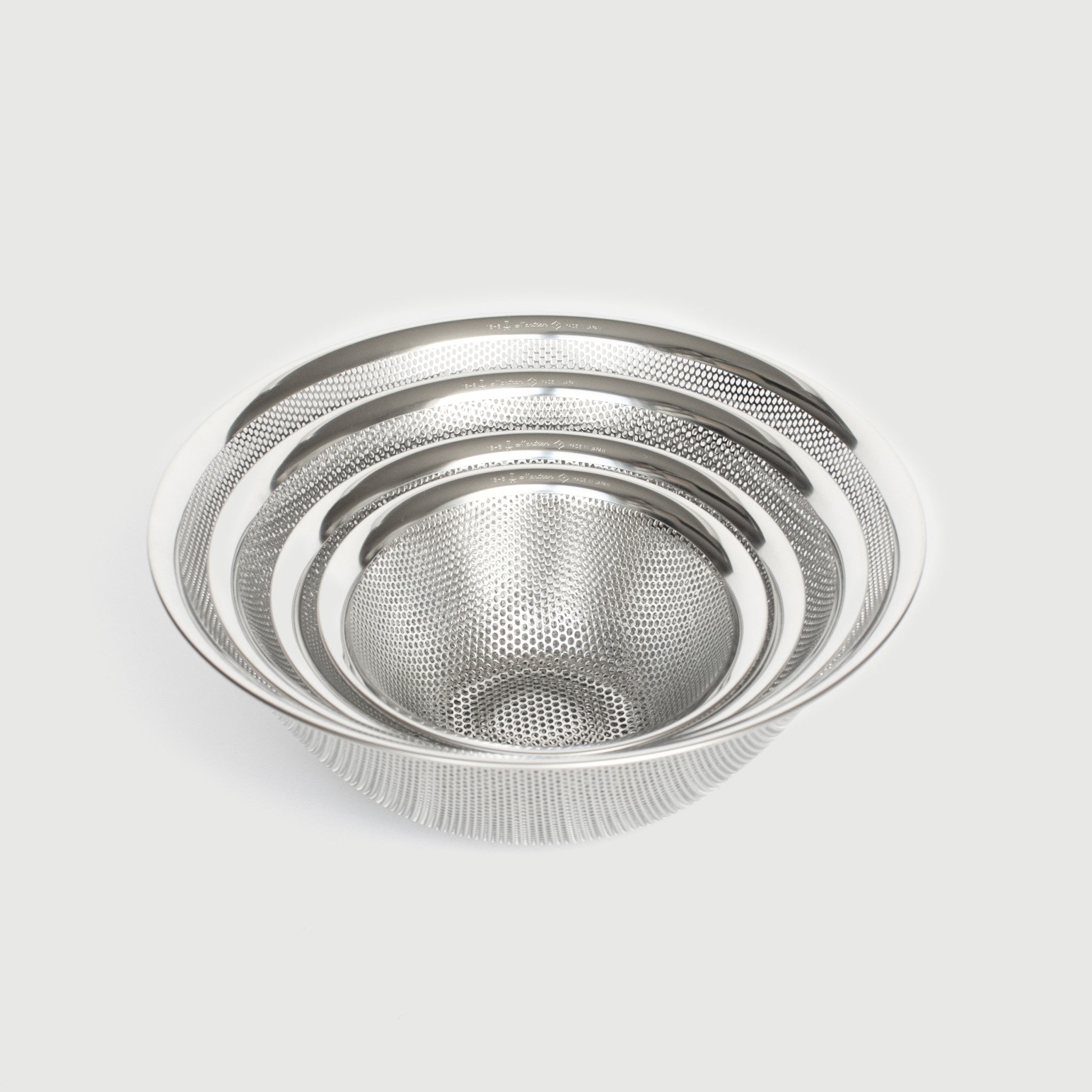 A simple and functional stainless steel strainer by Sori Yanagi. Originally designed in 1960, through extensive research with chefs, they form a series of nesting bowls and strainers that as a collection received the prestigious Good Design Award.