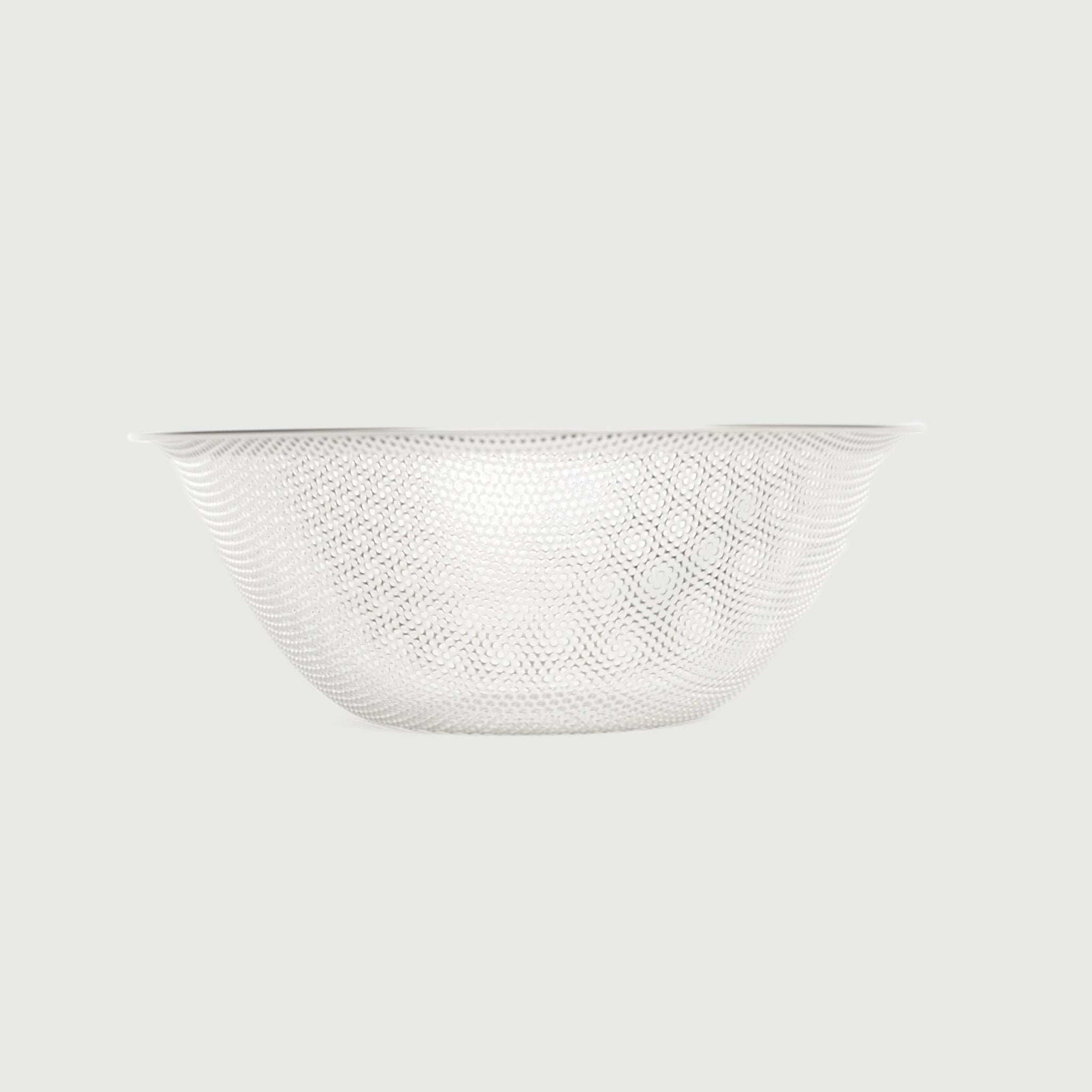 The holes are punch pressed and designed to have less contact surface for better drainage. They stack for easy storage and are useful for both preparing and serving food. Combined with the bowl series they are a versatile addition to any kitchen and a daily pleasure to use. Available in four sizes.