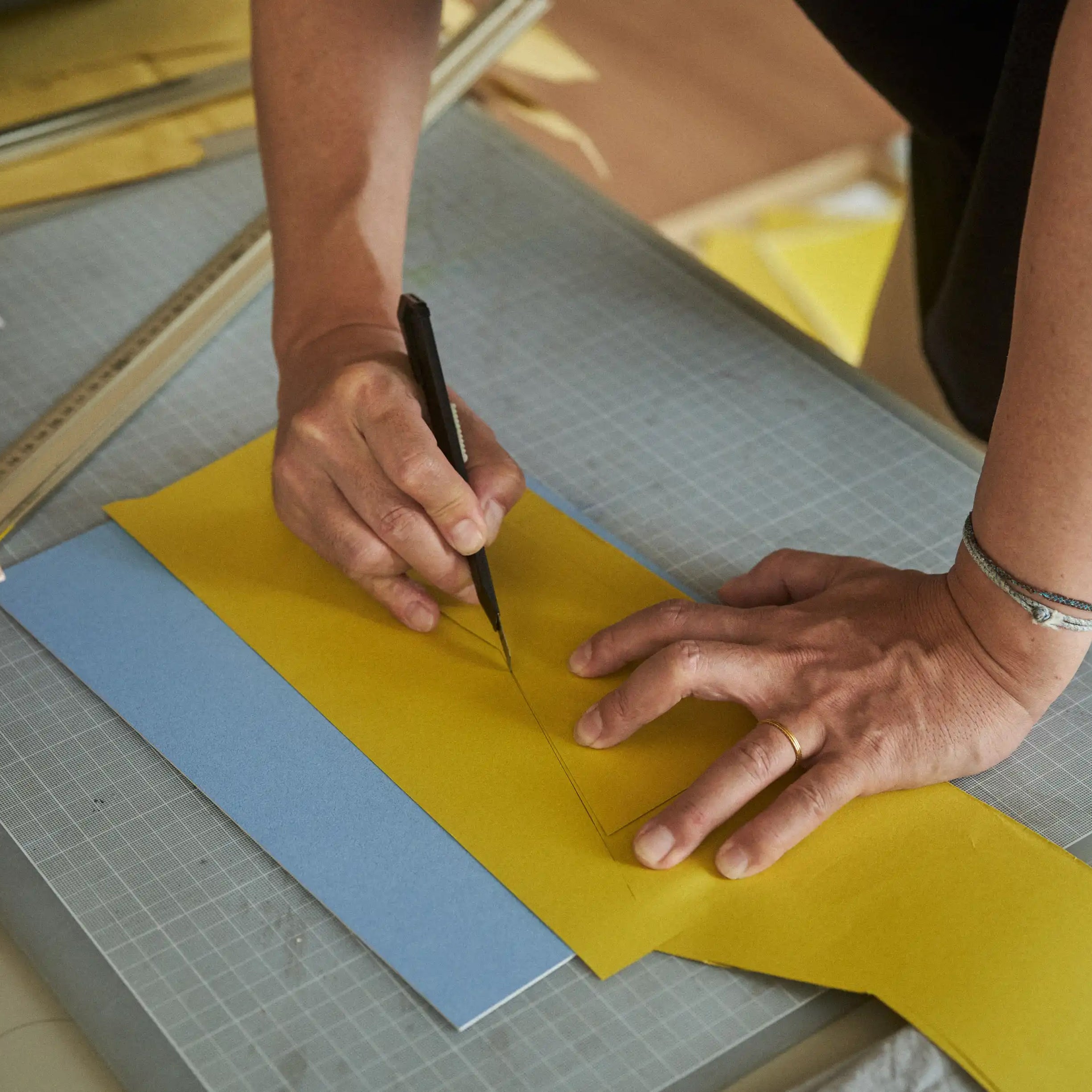 Taku Bannai is a Tokyo based artist creating cut-out works using layers of tanto paper. Playing with colour, texture and weight, the artist prefers to cut freehand, making lines with natural fluctuations, reminiscent of the contours of the landscape.