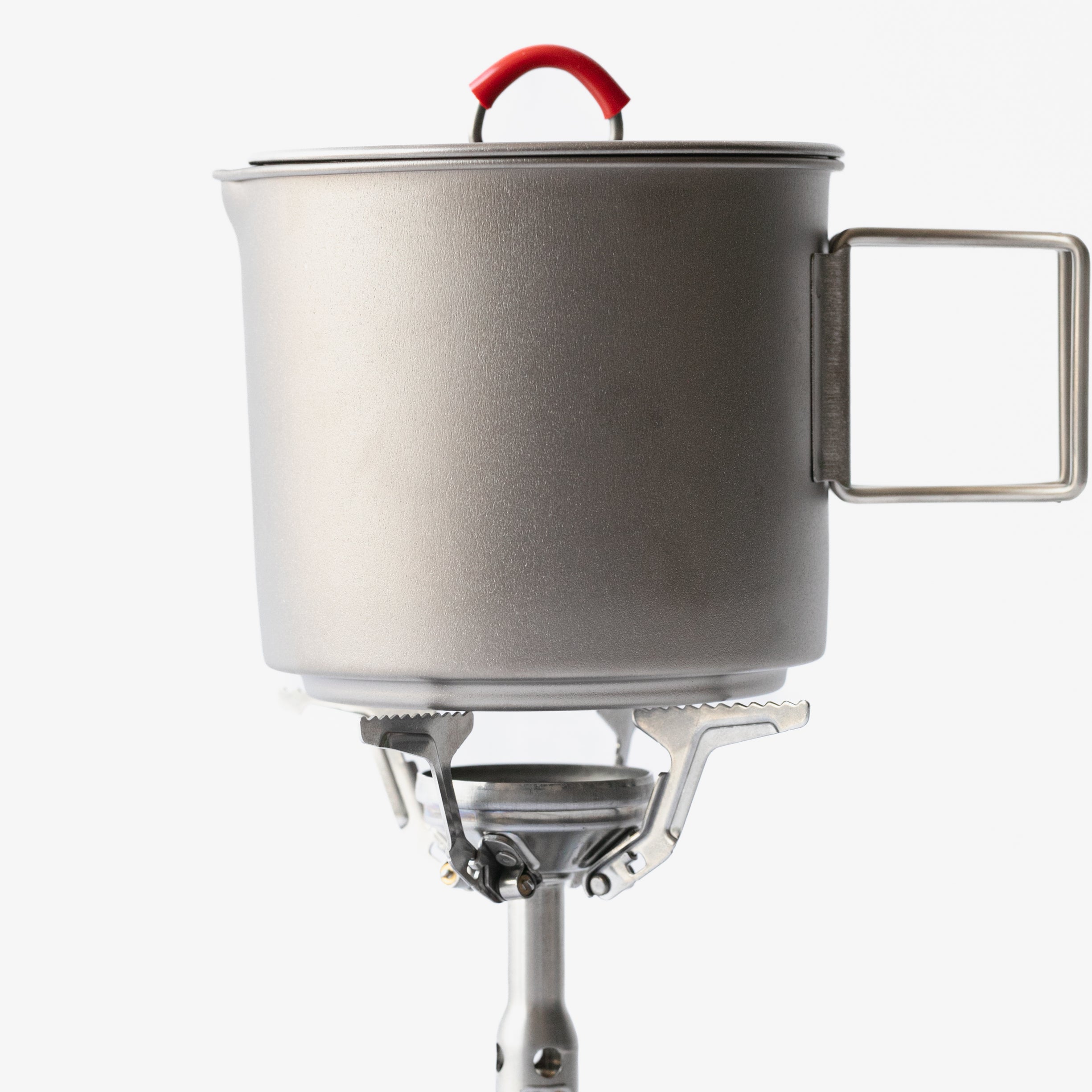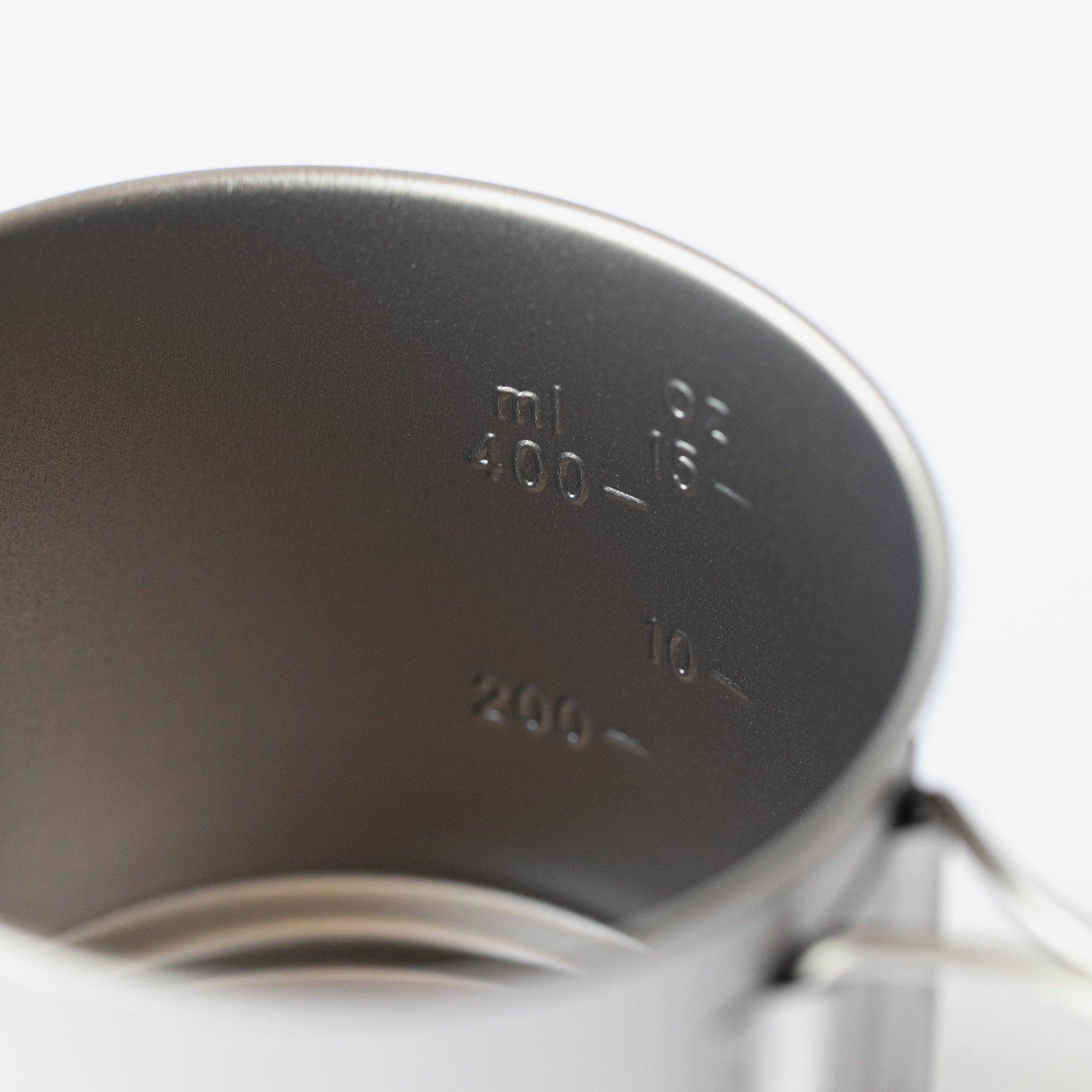 Key features include foldable top handles for easy use with a windscreen, precise internal measurement markings, and a well-designed spout for pouring. The pot's bottom ridge is crafted to fit perfectly with the Evernew Stove Stand DX, ensuring stability and efficient heat transfer. Additionally, the pot conveniently nests the stove for compact travel. A small cloth can be used to protect the pot’s interior from scratches during transport. If your primary need is to boil water, this compact and durable mug pot is the perfect choice.