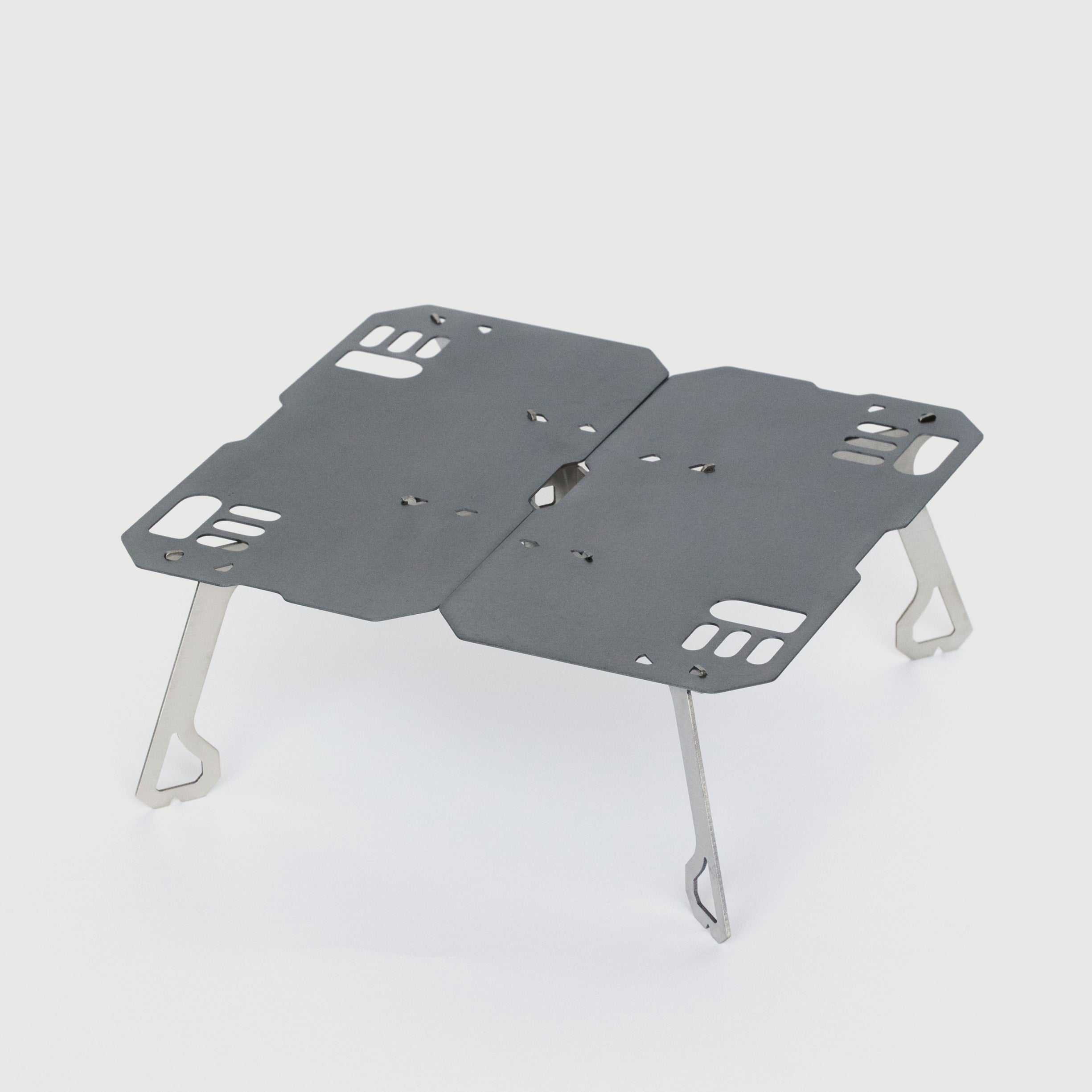The ideal choice for outdoor enthusiasts and cyclists in search of a practical, space-saving solution without compromising on durability. Compact and lightweight, the TiNY Table is tailored for solo adventurers and is easily foldable for convenient storage. Designed with four titanium plates arranged in a cross pattern, it offers a sturdy yet lightweight base capable of supporting up to 5kg of weight.