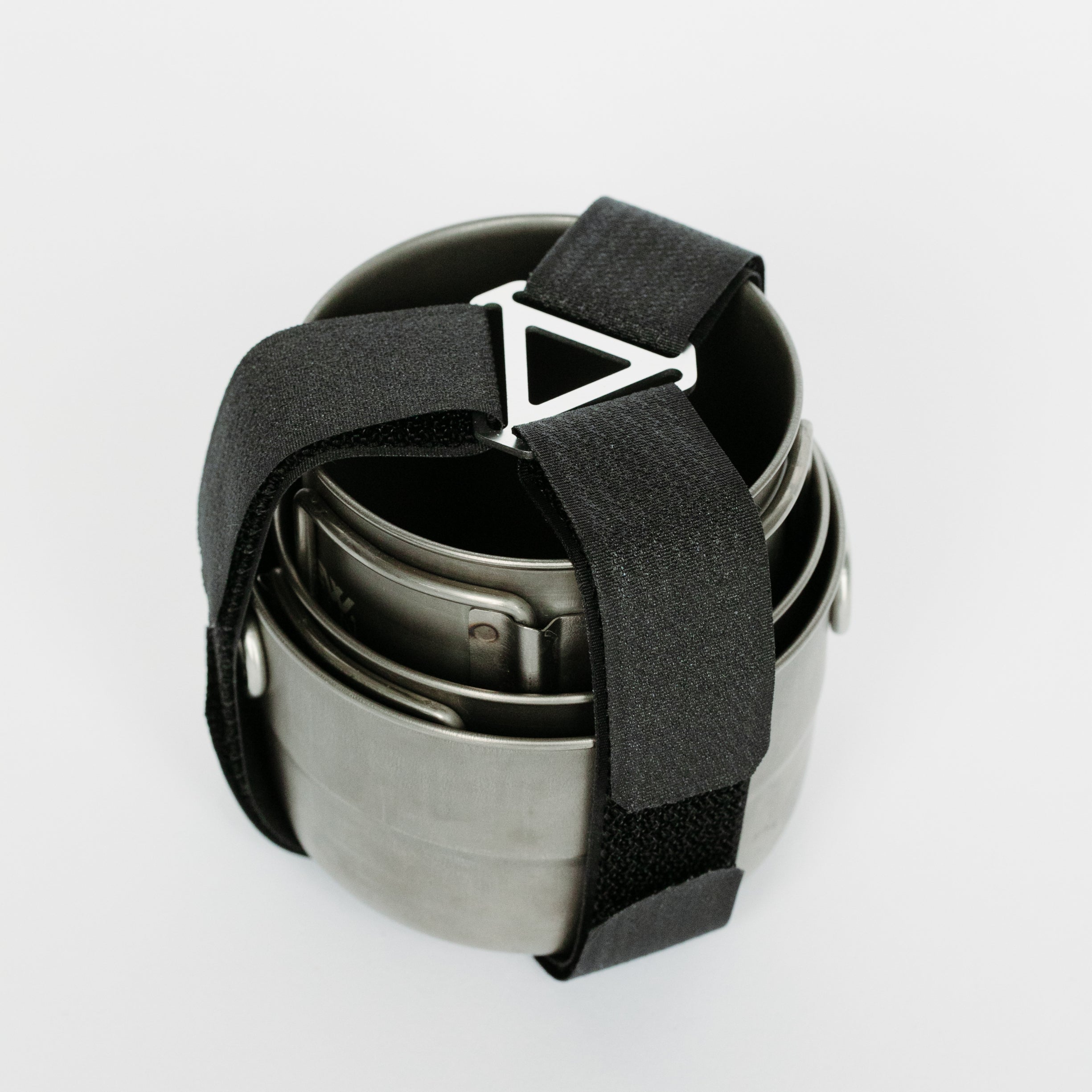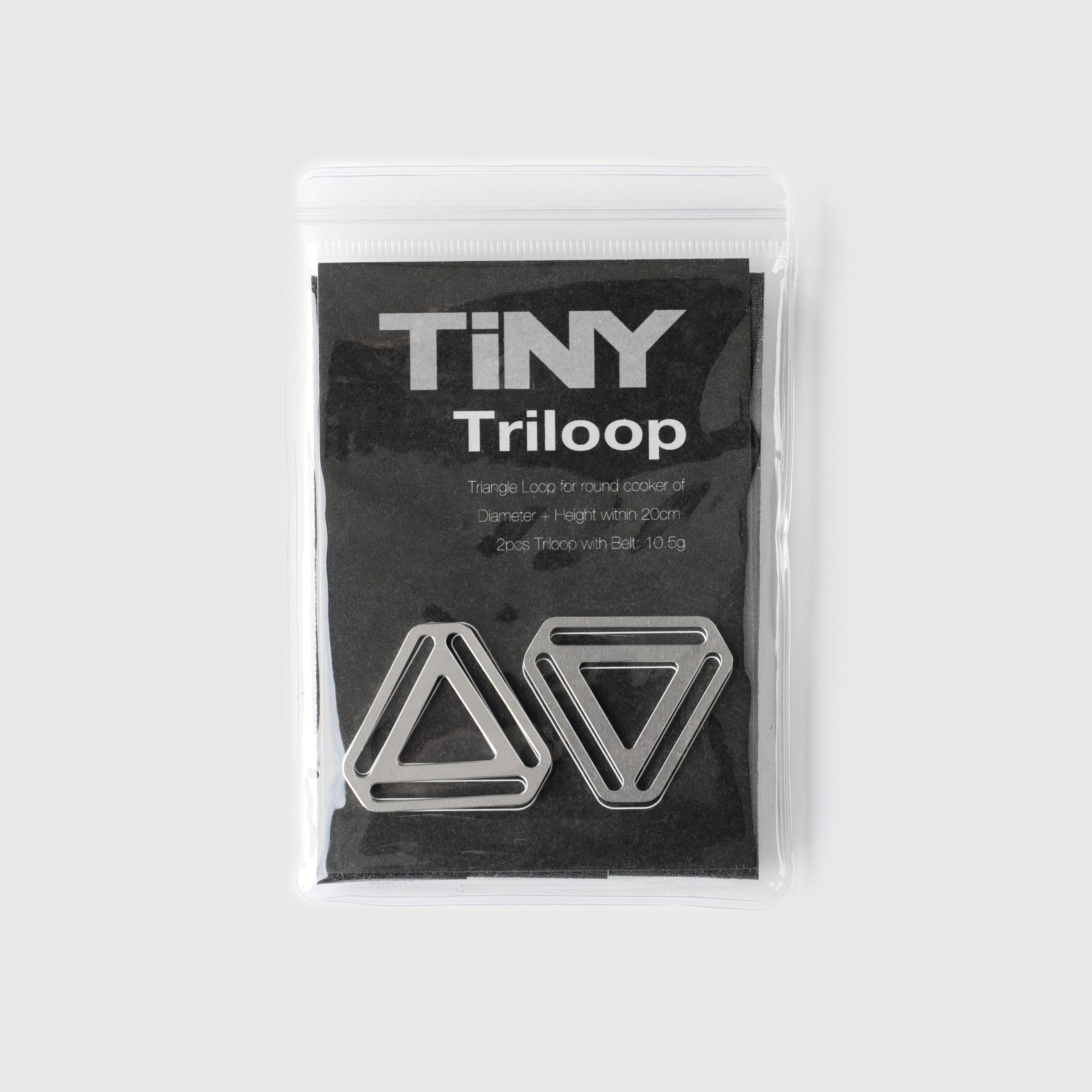 The TiNY Triloop is a practical accessory for securing round cookware. It features an aluminium loop and three nylon straps, suitable for items up to 20cm in diameter and height. Weighing only 10g, it's lightweight yet durable. Unlike silicone bands, its nylon straps offer reliable durability. Perfect for outdoor adventures, it keeps your cookware securely bundled and portable.