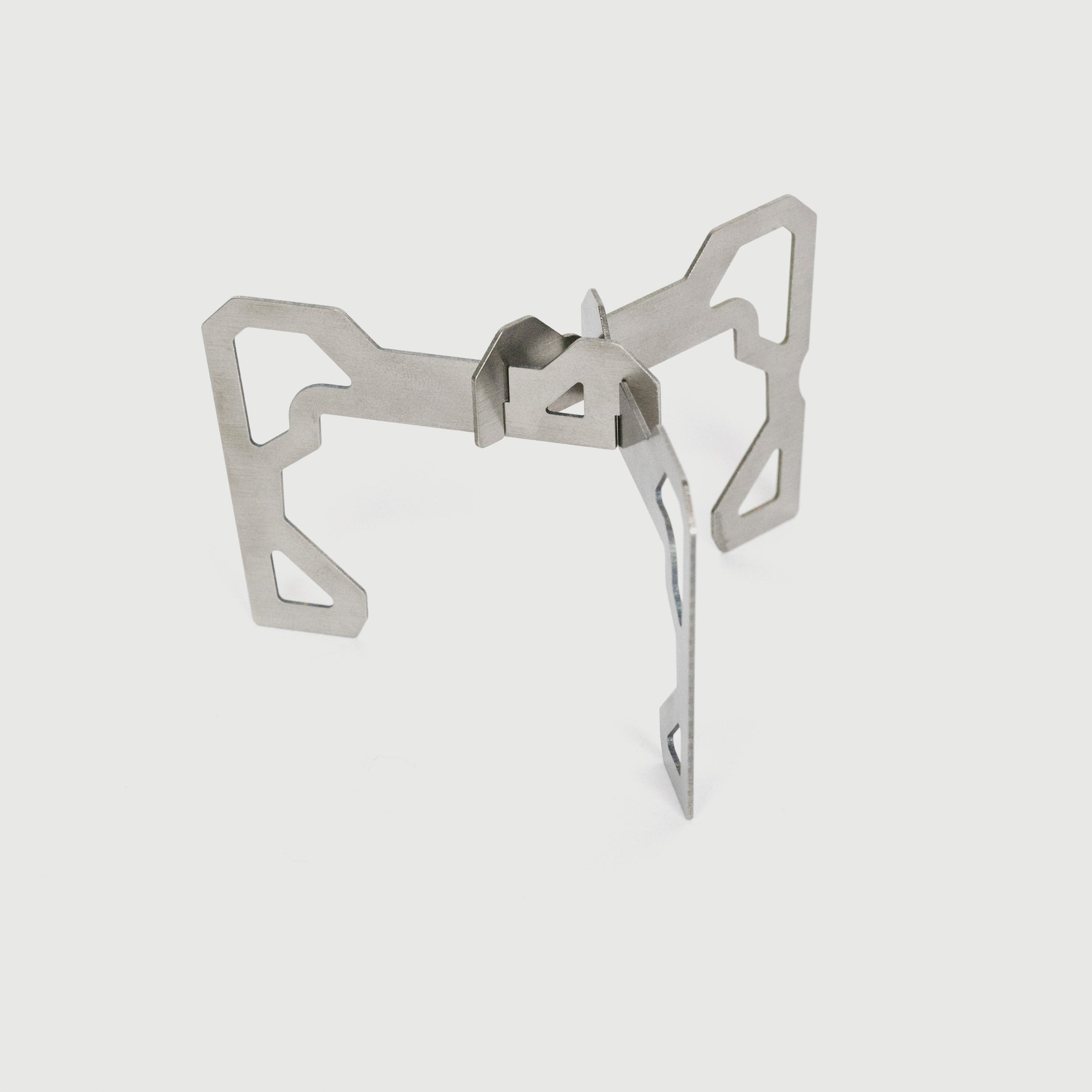 This compact and adaptable trivet is the perfect addition to your outdoor cooking gear, offering both space-saving convenience and compatibility with various of stove types. Constructed from three titanium plates, it fits snugly into the bottom of an Evernew 220 pot. Compatible with Trangia-style alcohol stoves and Blue Note stoves, it can also serve as a solid fuel trivet.