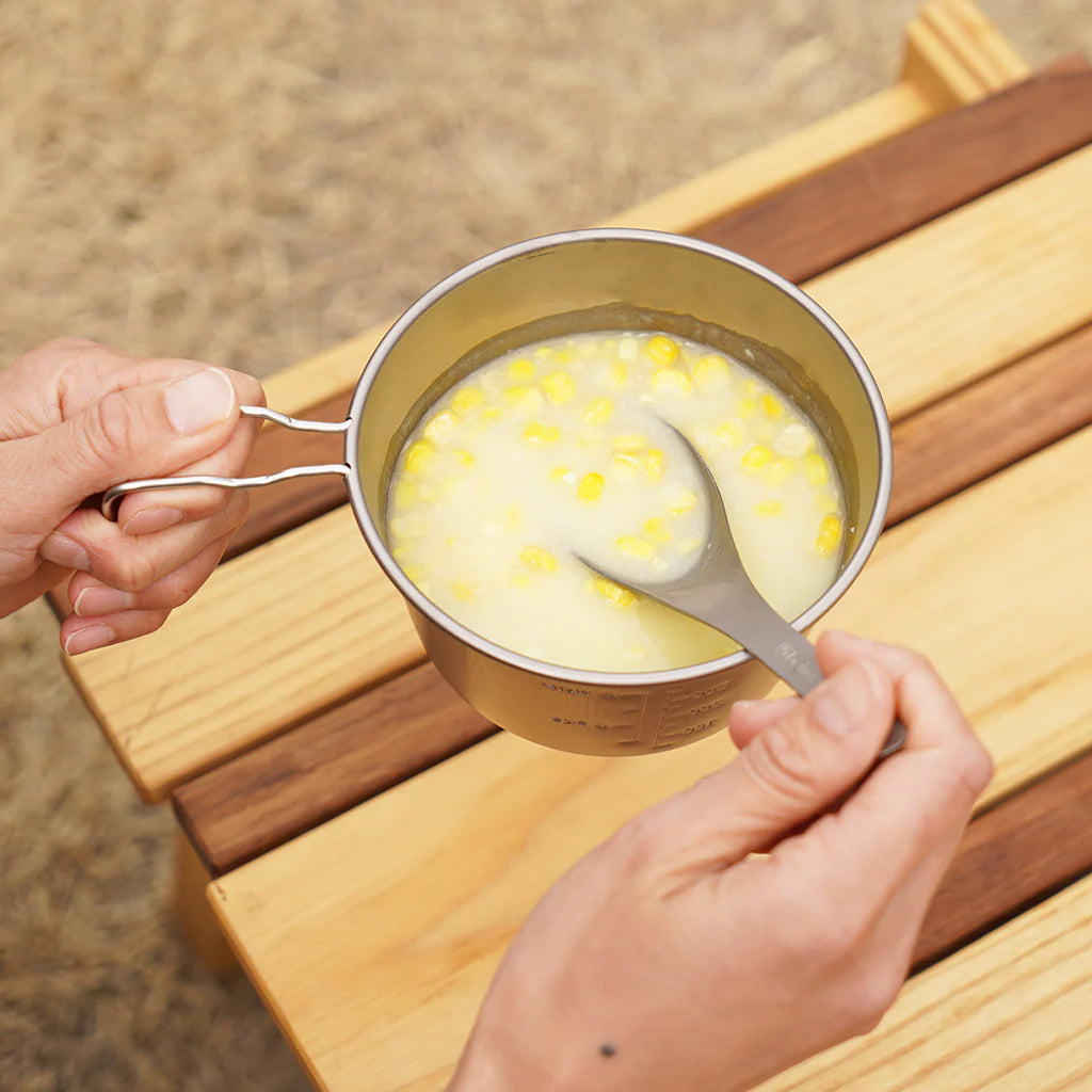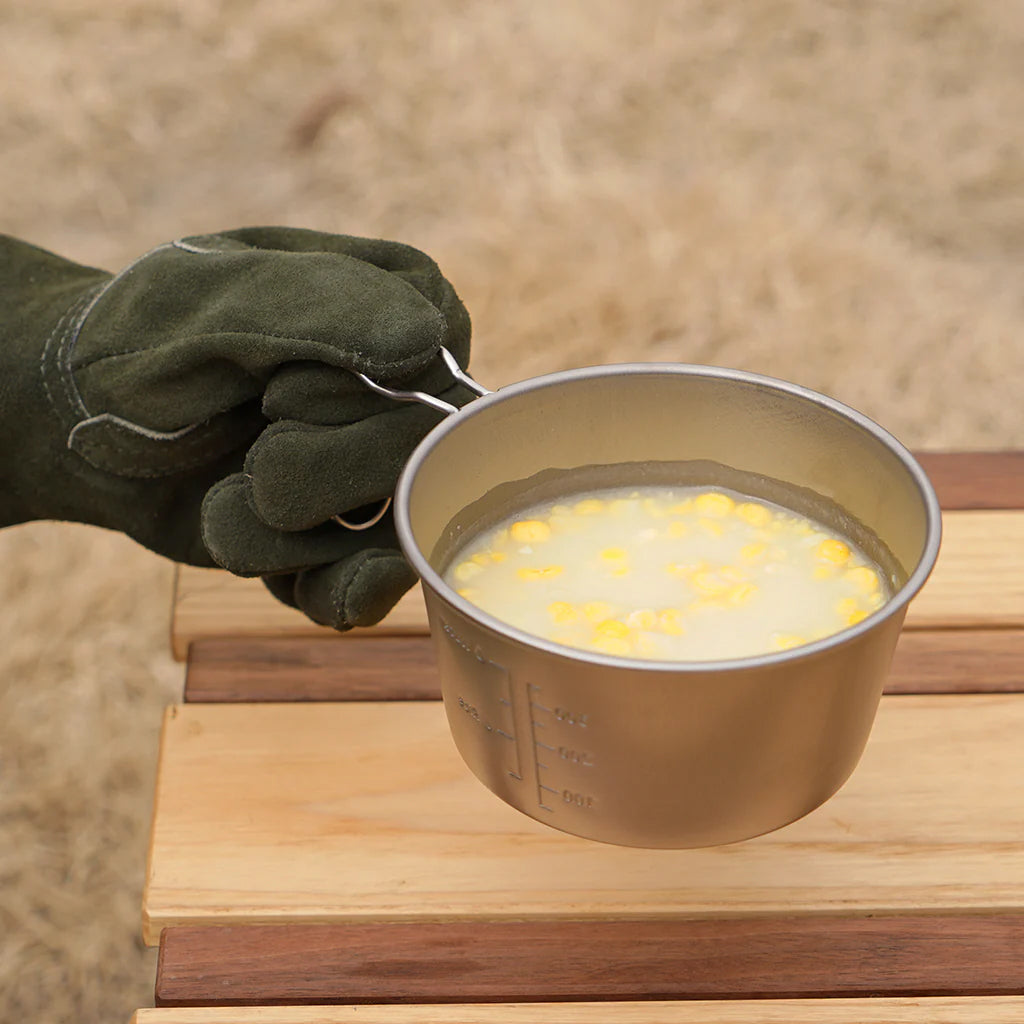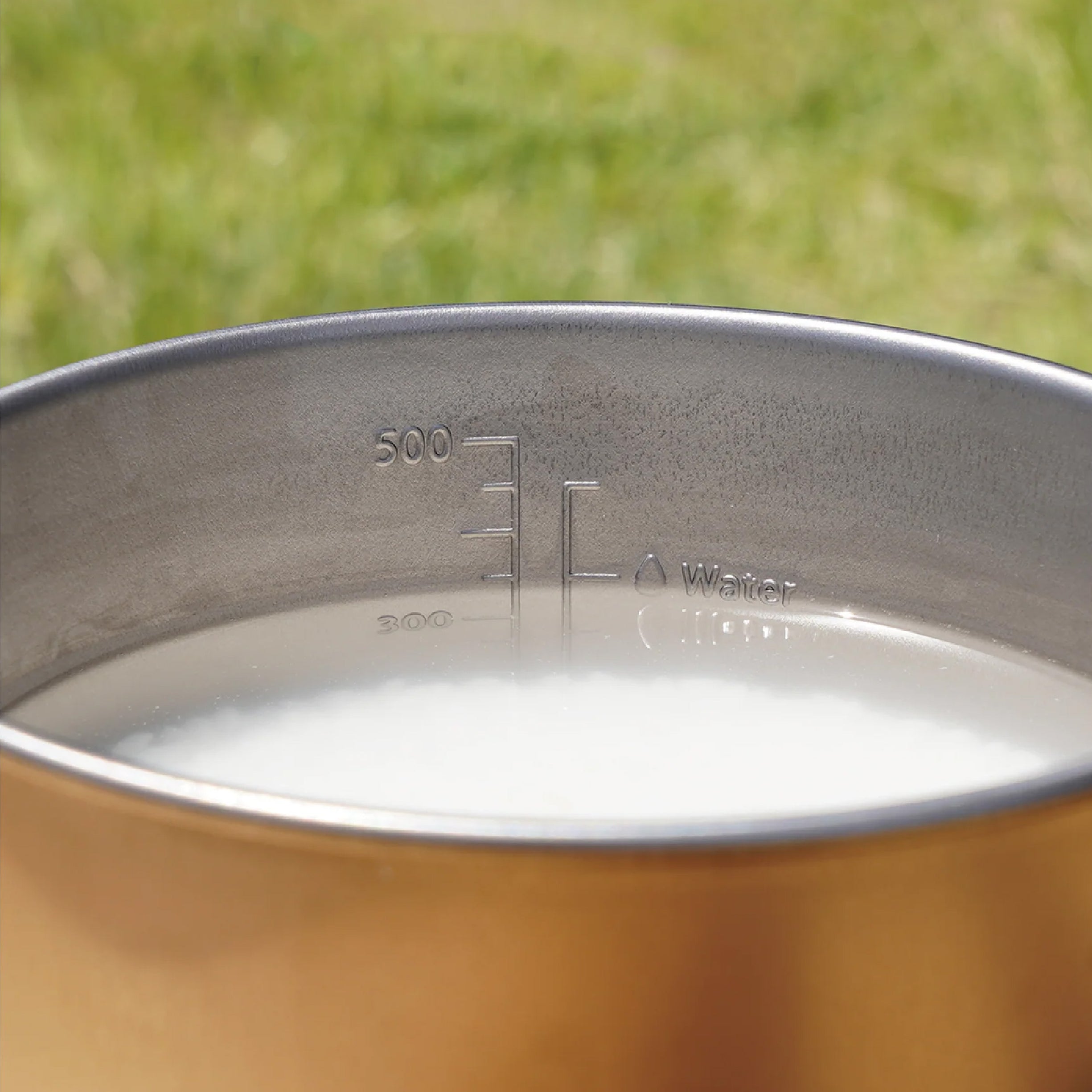 The cup also includes measurement markings inside, making it ideal for precise cooking. Compact and practical, this cup is perfect for minimalistic campers and backpackers who prioritize efficiency and convenience.