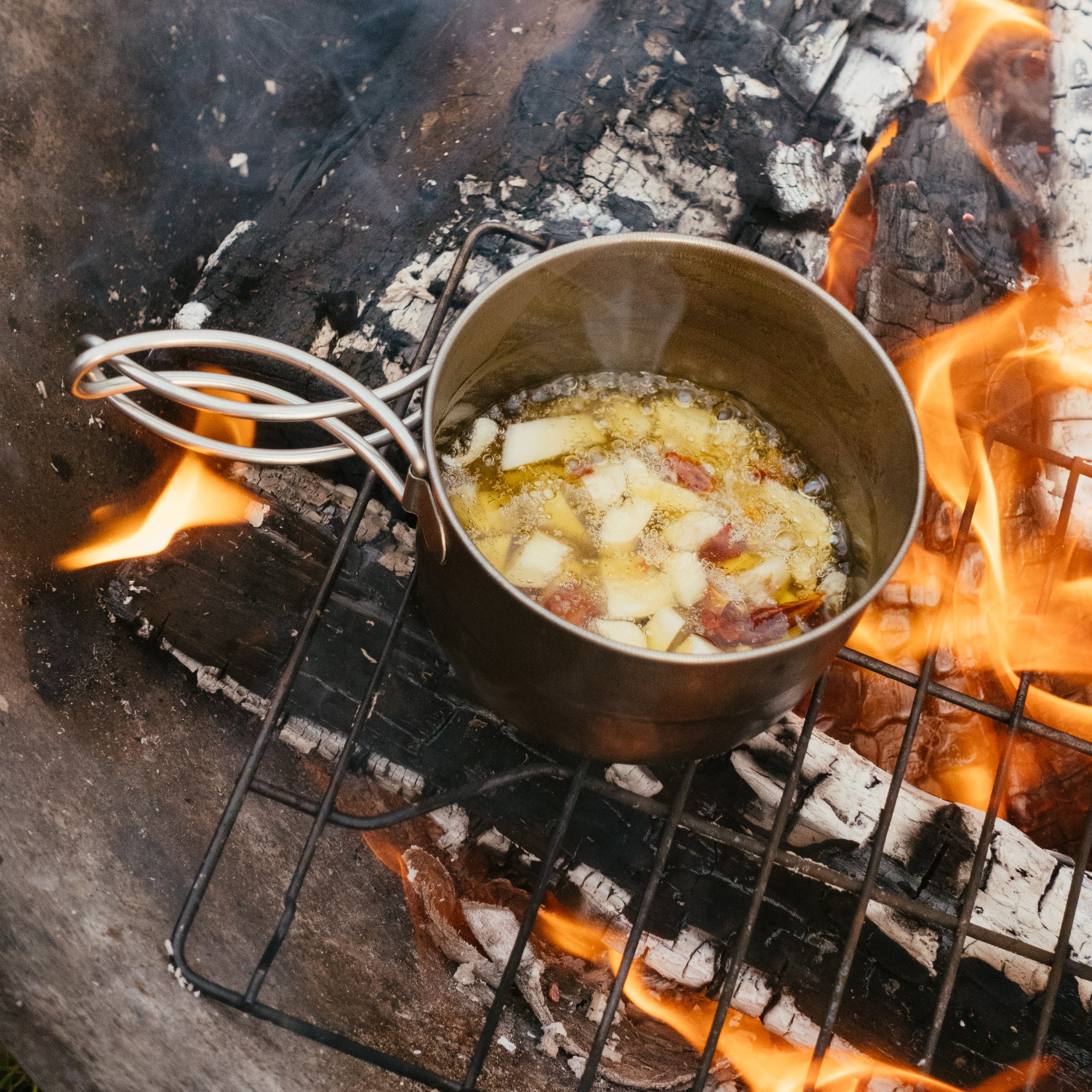 The Belmont Titanium Trail Cup 280 is a compact, lightweight, and durable cup perfect for outdoor use. It features a long folding handle for easy reheating or cooking directly over a fire.