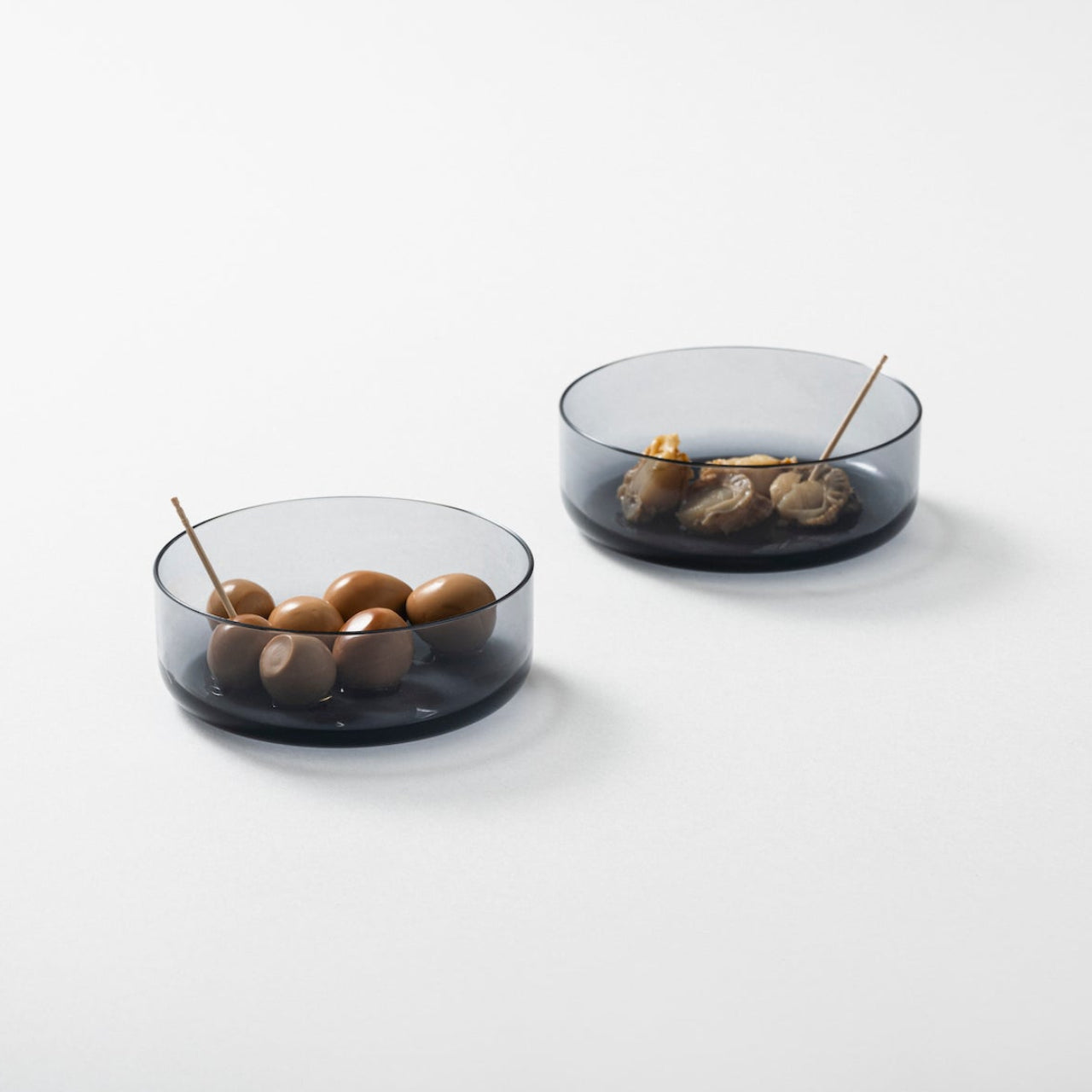 A pair of nesting containers that can be used to store, carry or serve snacks. The names play on their roles: Uenosuke (upper/older sibling) fits over Shitanosuke (lower/younger sibling). A great way to serve olives or nuts that need a dish for discarded shells and stones. They are designed for daily use and made from exceptionally durable, high-grade Triton, giving them a glass-like appearance but with less fragility. Winner of the Good Design Award 2023.