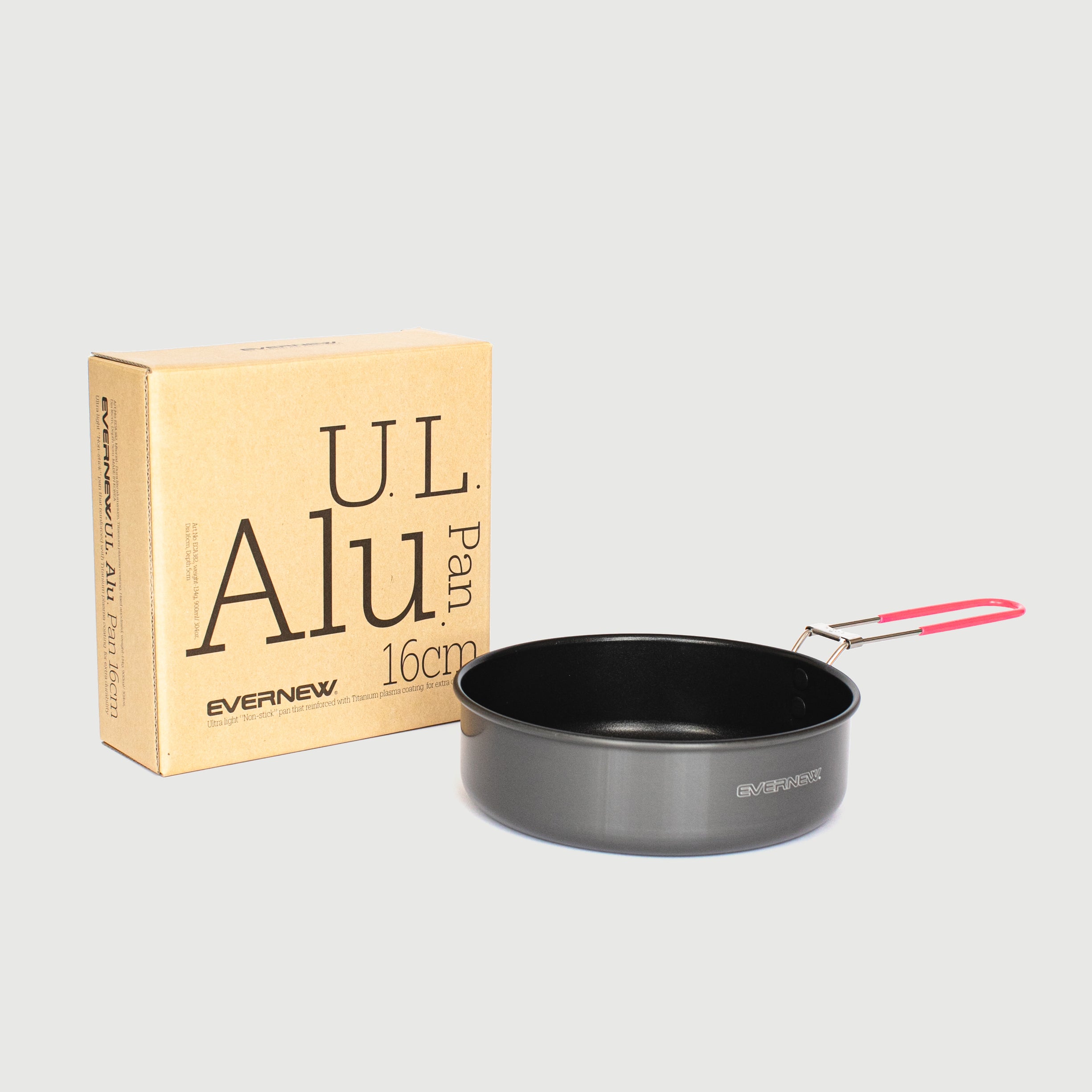 The Evernew U.L. Alu Pan is a ultra-lightweight yet durable frying pan made from Dura-Lite aluminium, offering high thermal conductivity similar to titanium. It features a titanium plasma coating for non-stick performance, making it easy to clean and highly resistant to damage.