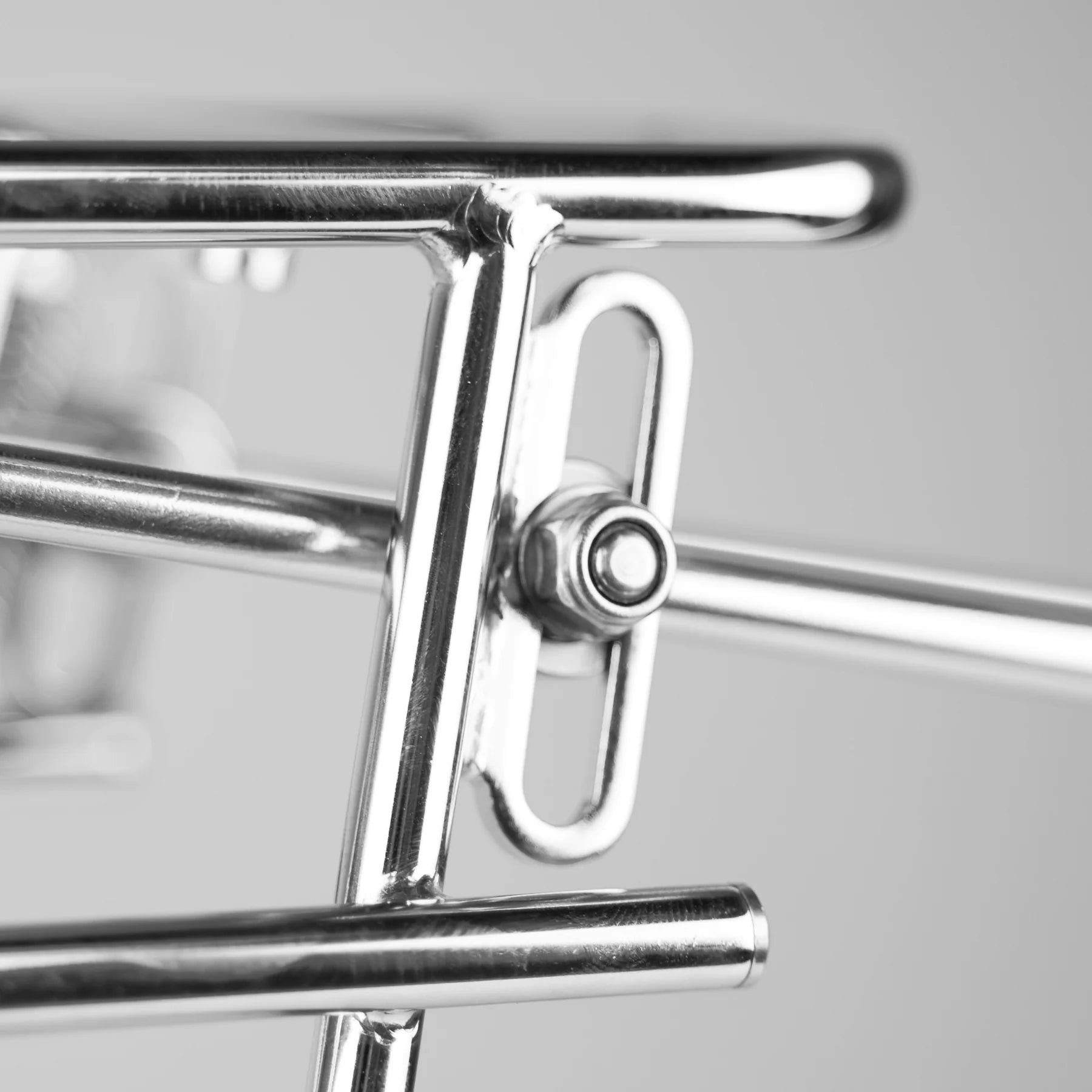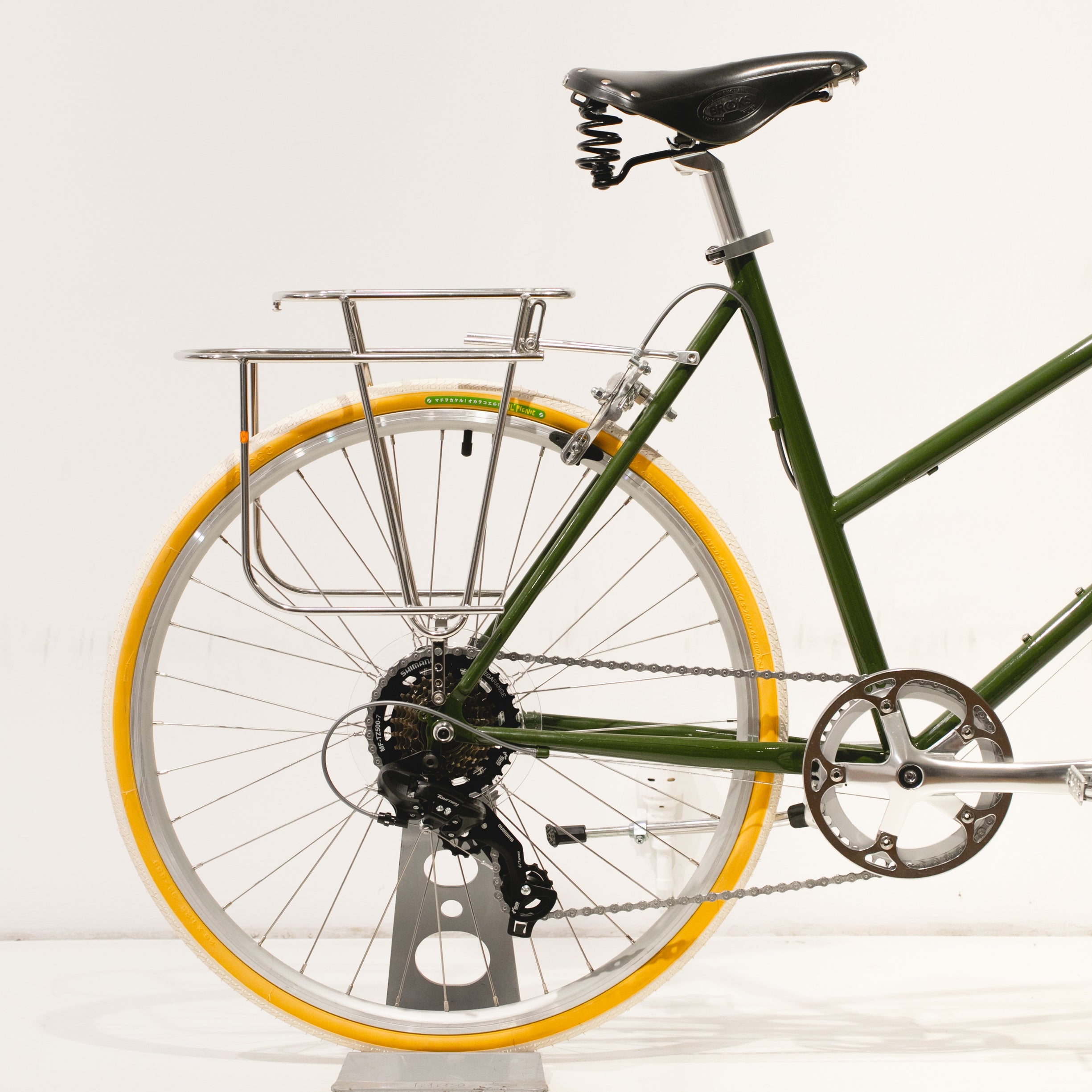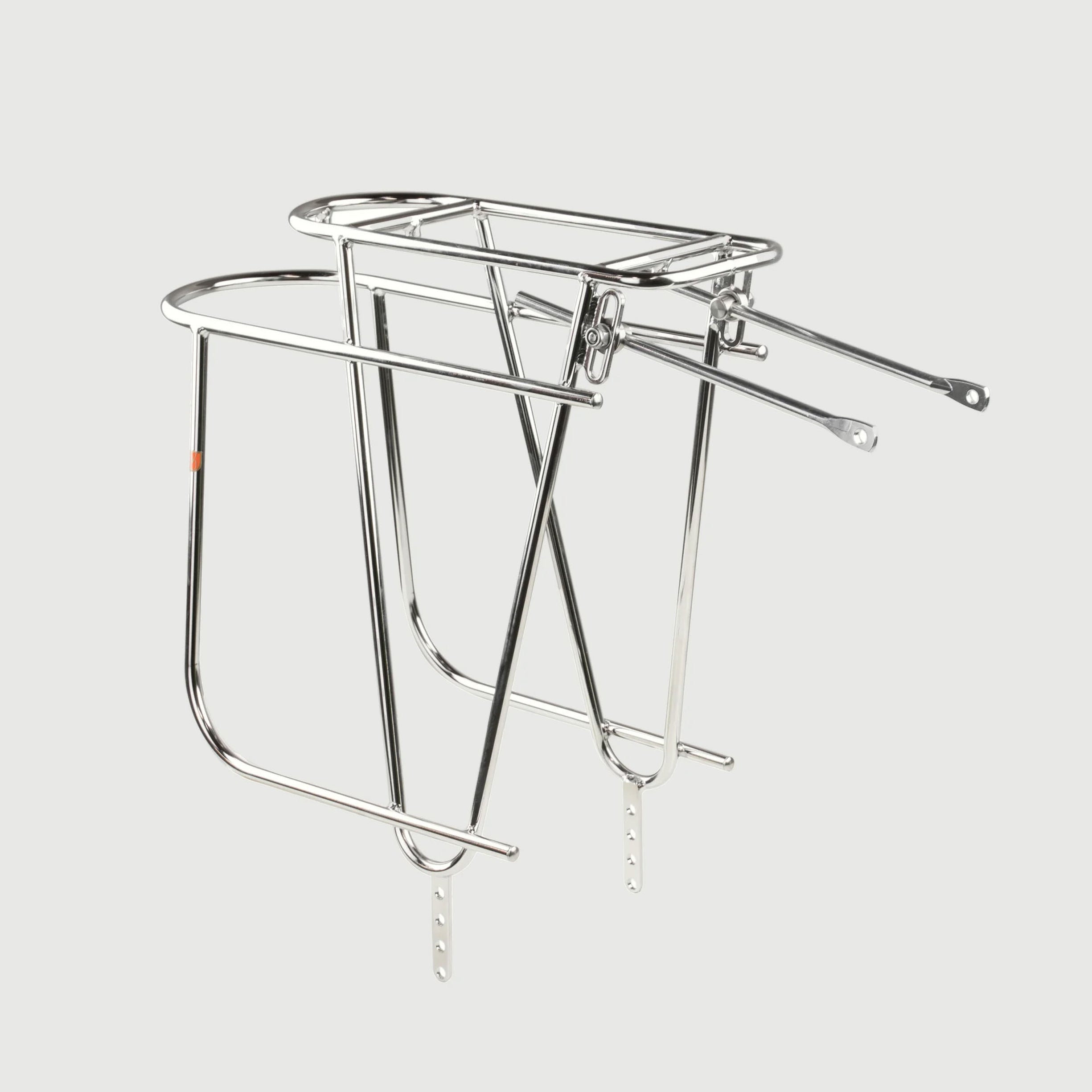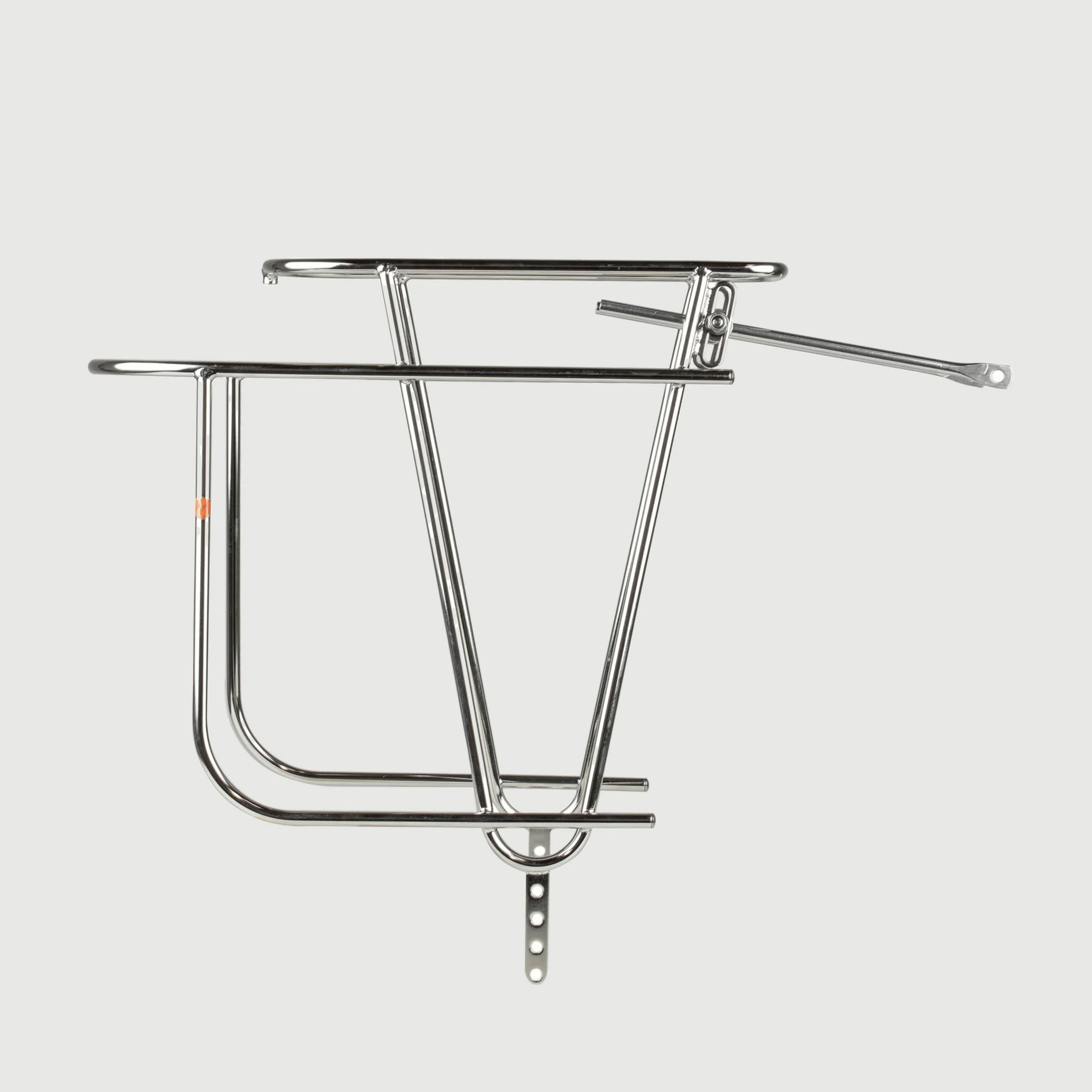 The VO Campeur Rack is a durable stainless steel rack for touring and commuting. It features a lower rail for easy pannier access and an upper deck for extra gear. Mounts securely to seat stay bosses and includes eyelets for fenders and a rear light.