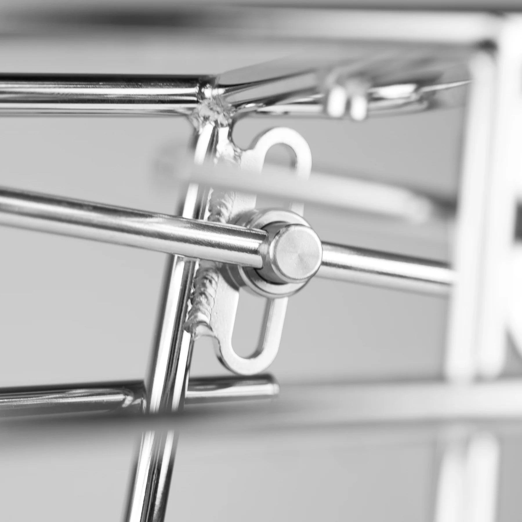 The lower tangs feature four sets of holes to fit most bikes with 26in, 650b, 700c, and 27in wheels.