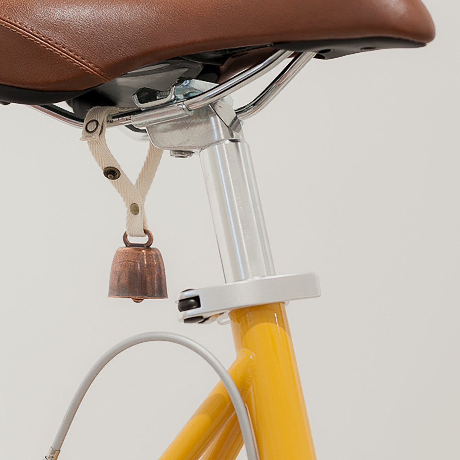 Hang from your saddle or handlebar and gently warn others you are approaching with a warm, friendly tinkle.