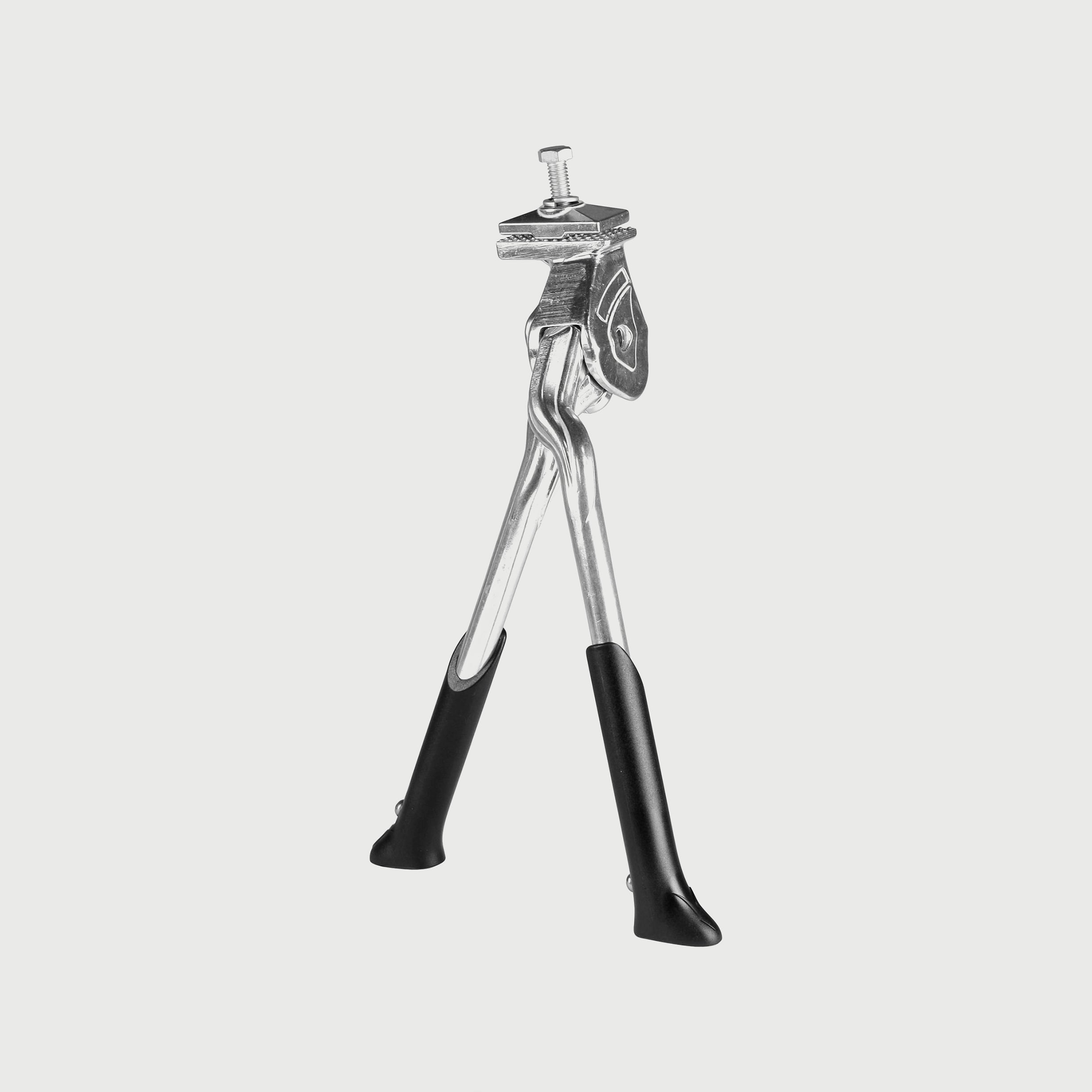 Perfect for city bikes the Copenhagen Double Leg Kick Stand has a scissor action, folding both legs to the non-drive side of the bike. The adjustable leg length can be locked to the desired length and fits bikes with or without kickstand plates.