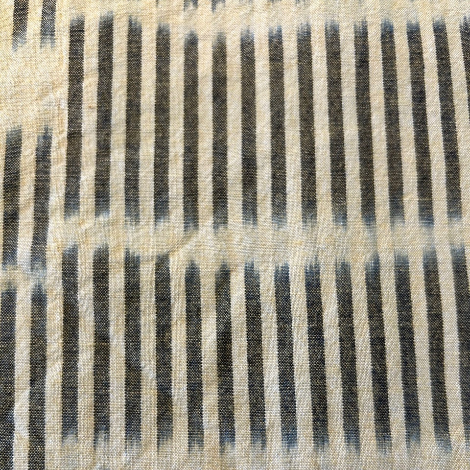 Bingo Kasuri, known for its intricate process involving pre-dyeing, resist-dyeing, and unique faded patterns, is a traditional fabric with a beautiful deep blue hue. While it once dominated 70% of the domestic market, demand has declined due to changing lifestyles. Today, only two workshops preserve this technique, creating high-quality, unique fabric. We aim to blend tradition with modern living to share the beauty of Bingo Kasuri.