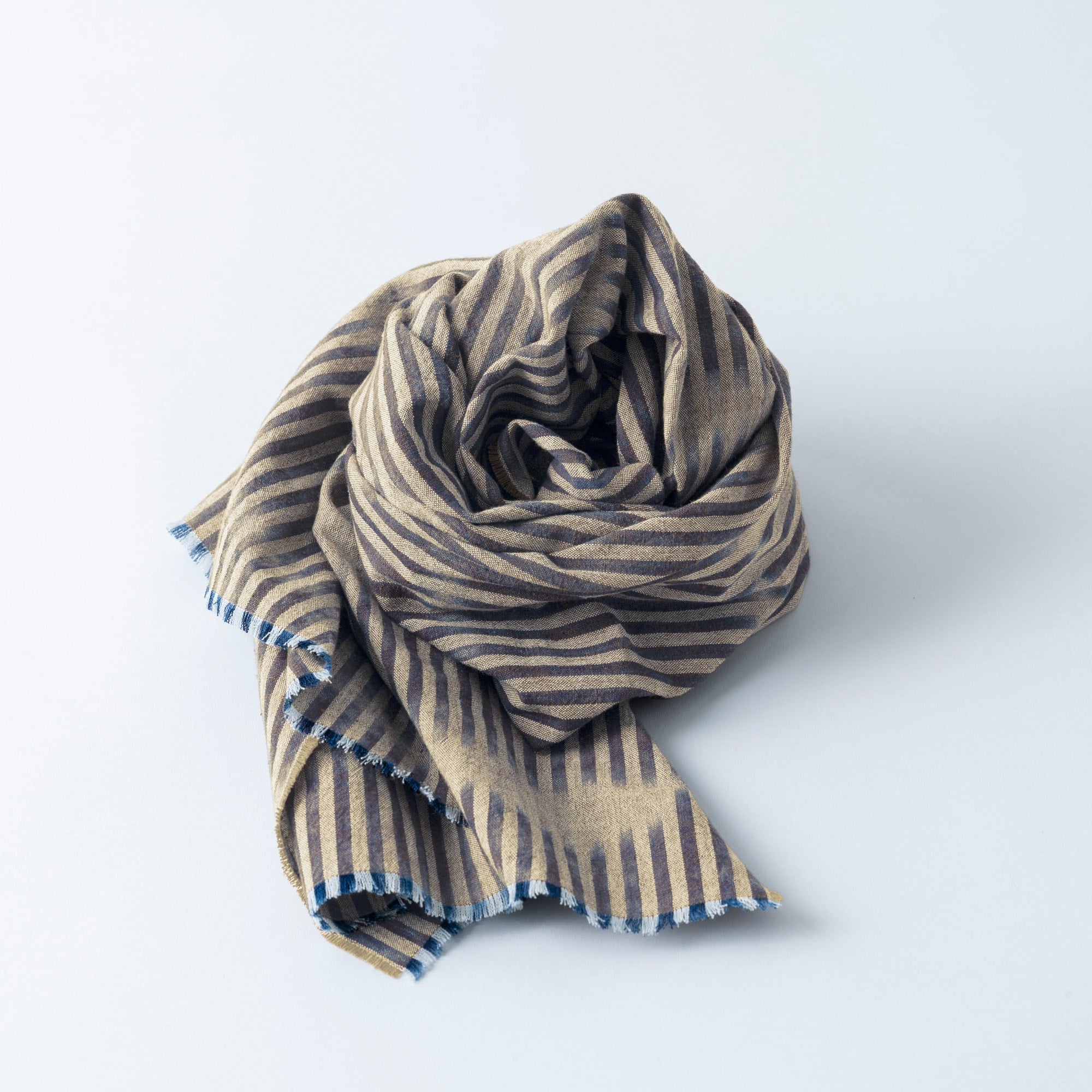 Slowly woven on a shuttle loom, the cotton fabric used to make this stole is fluffy and airy, with a smooth, comfortable feel that is cool in the summer and warm in the winter.