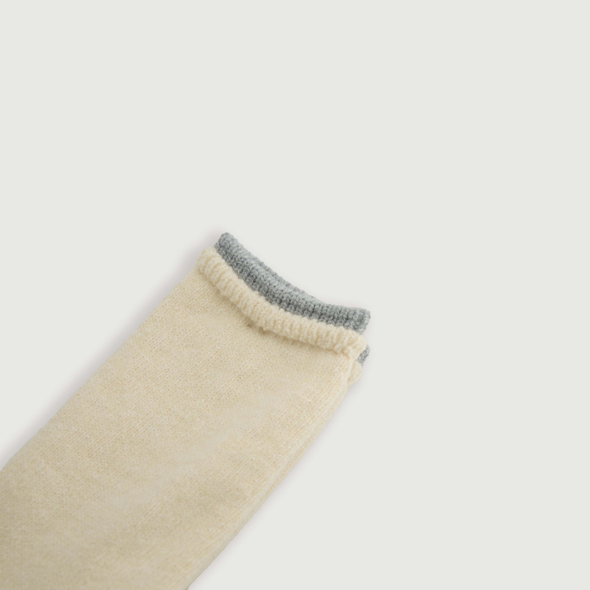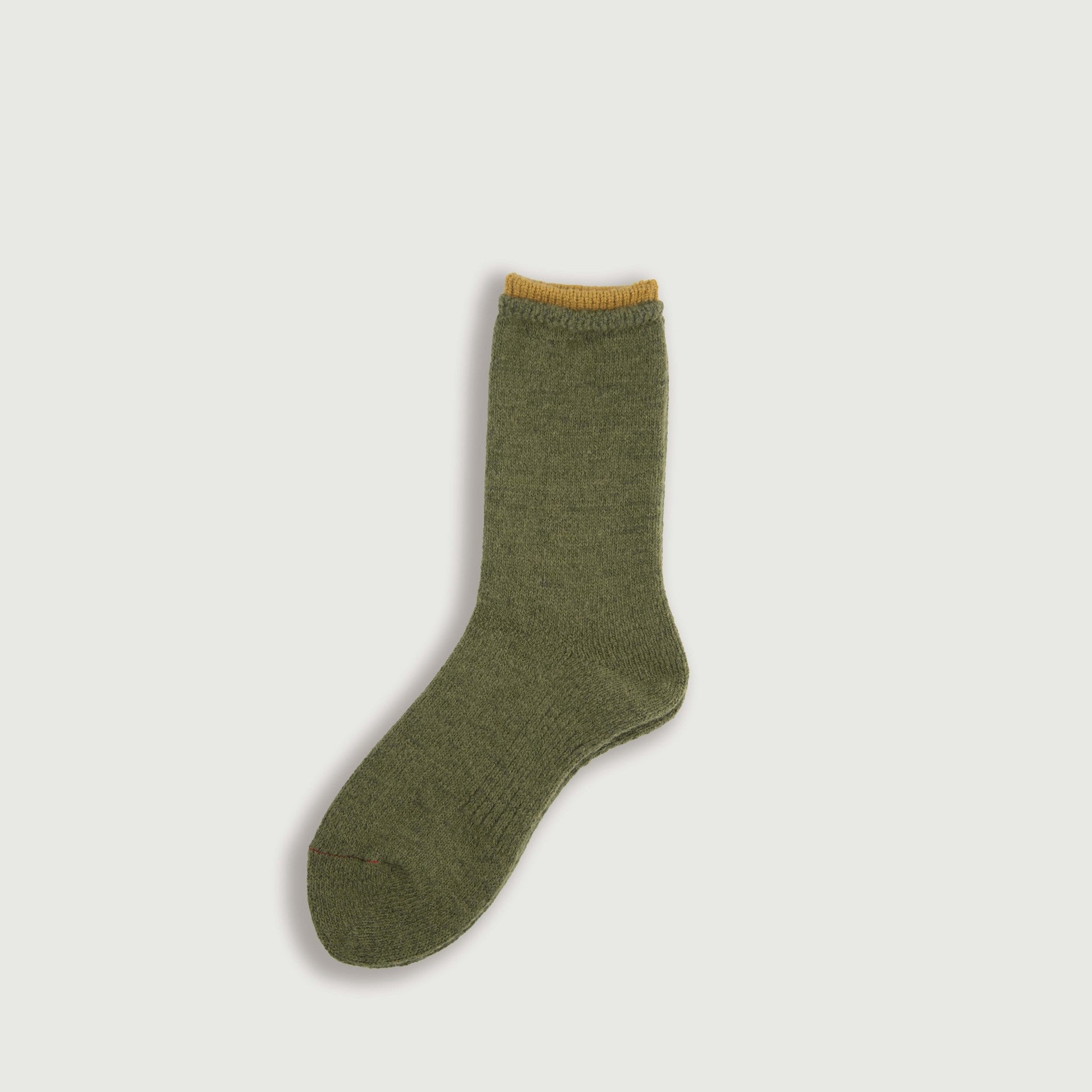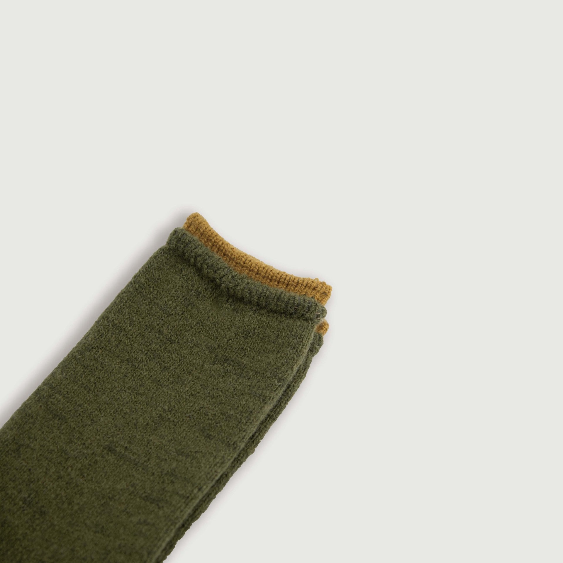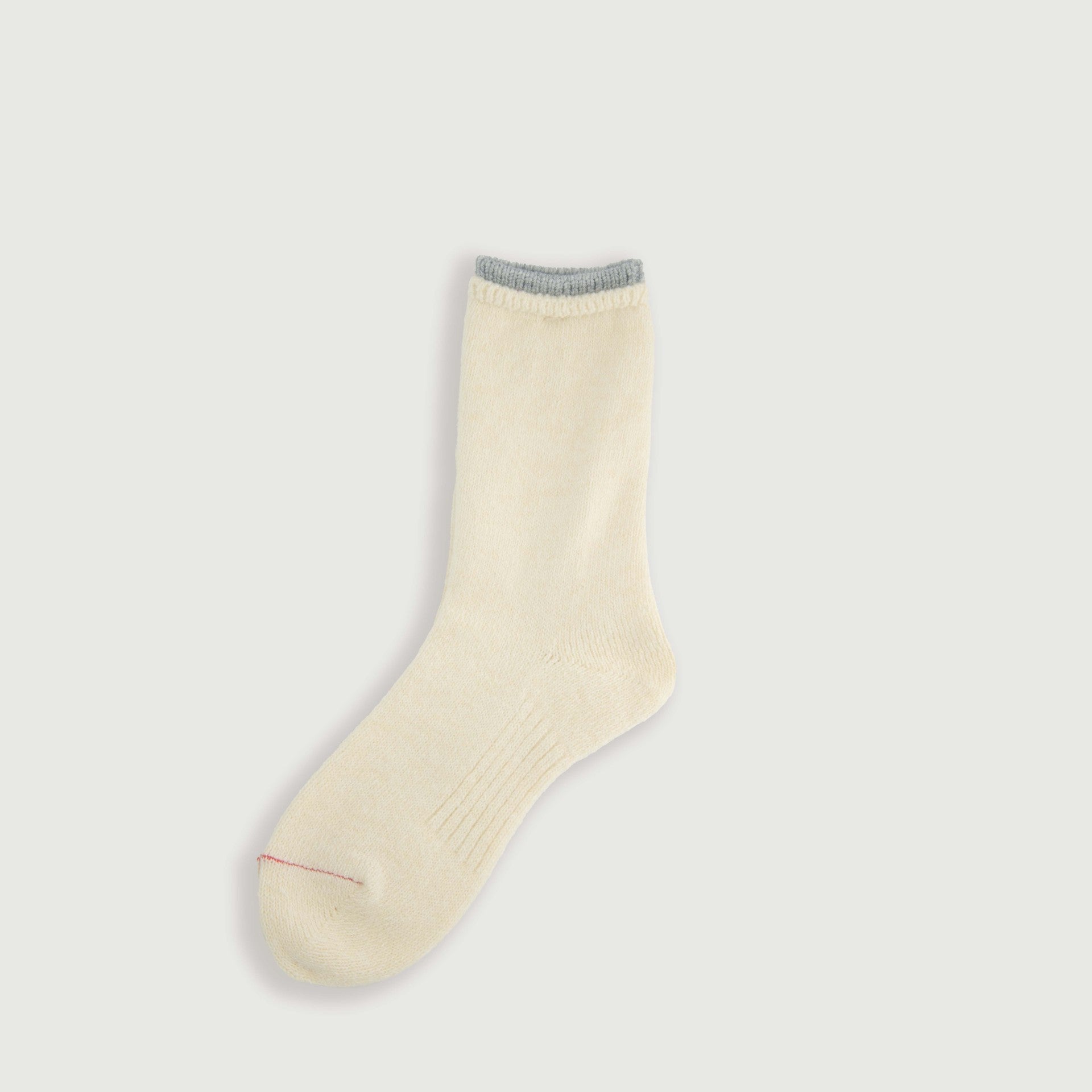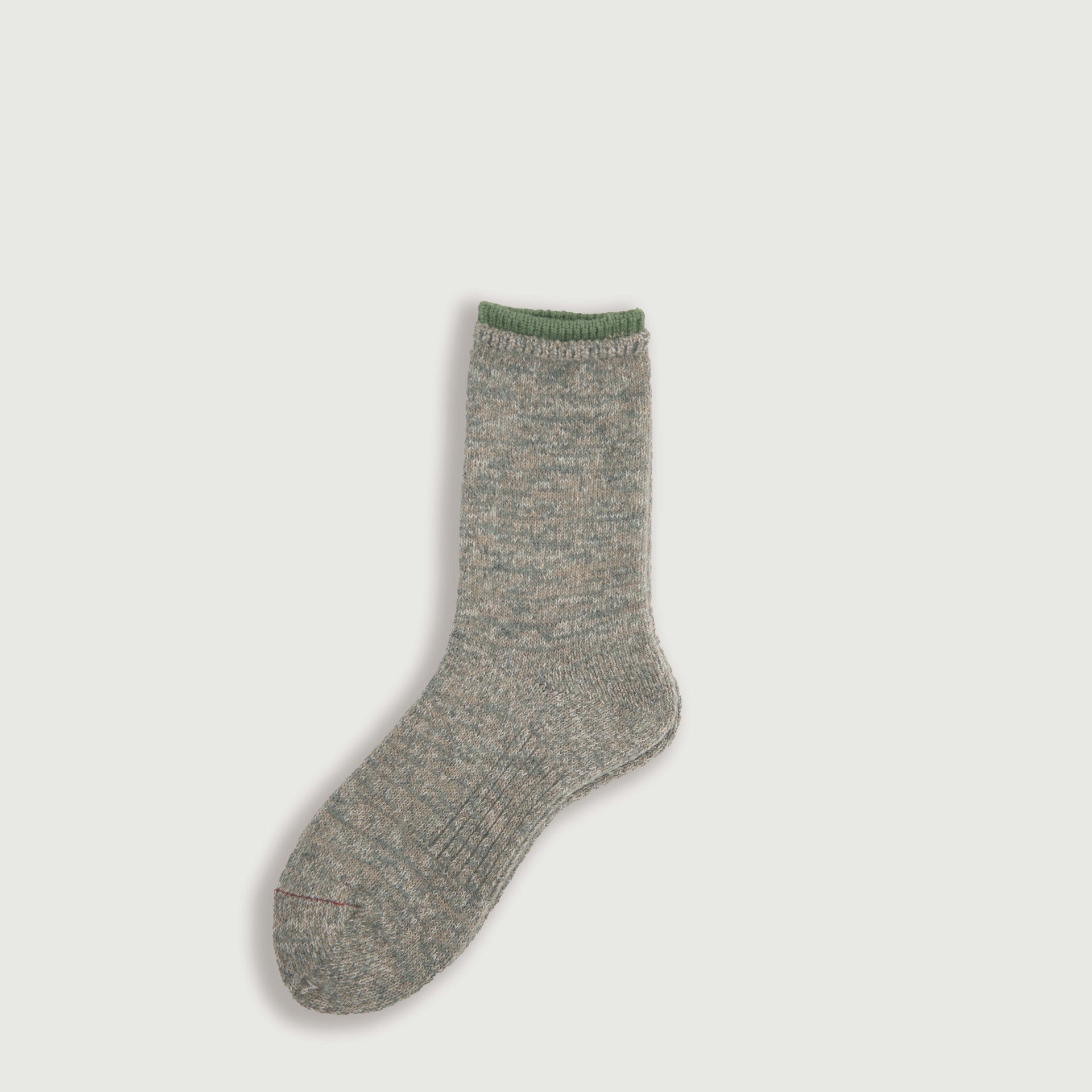 Warm, comfy, socks made from a mix of wool and hemp on vintage knitting machines in Nara prefecture, Japan. Designed with a contrasting hem and toe stitch they are both soft and supremely comfortable.