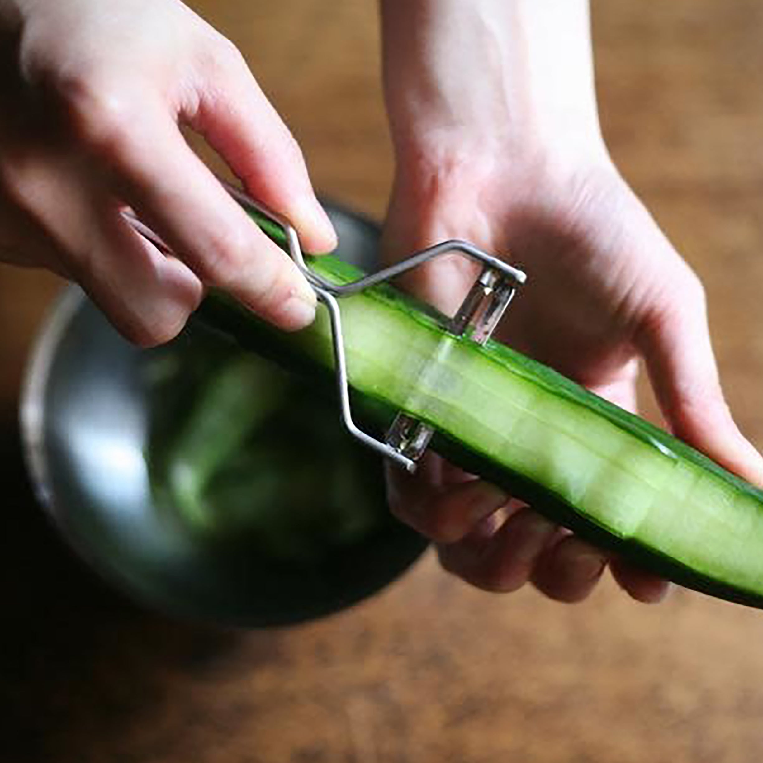 A peeler of exceptional quality and beauty, designed to last a lifetime, thanks to its easily removable blade that can be sharpened and replaced. Made from round stainless-steel bar, flattened for a comfortable fit it your hand, with a sharp blade for extra fine peeling. A kitchen to tool to use with daily pleasure.