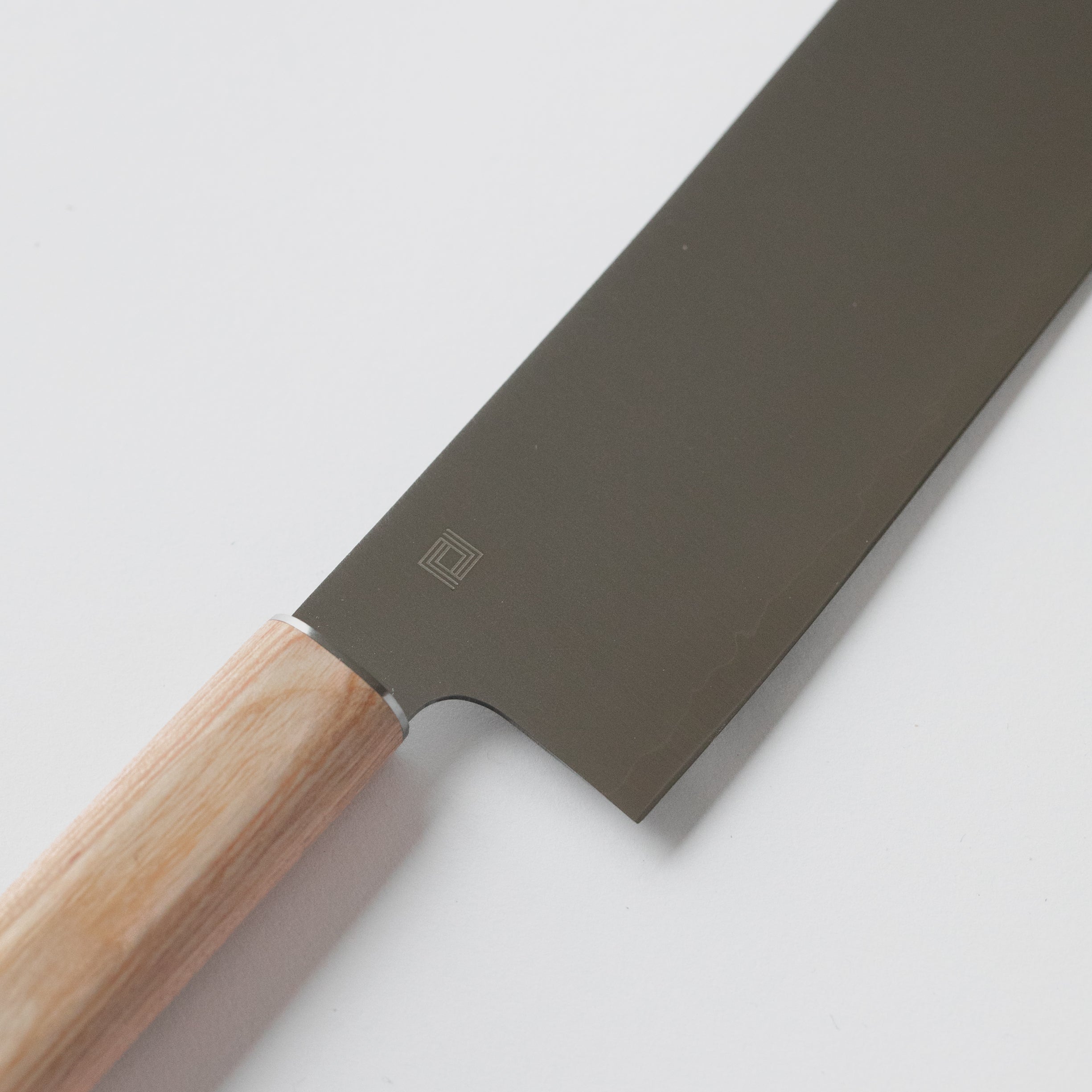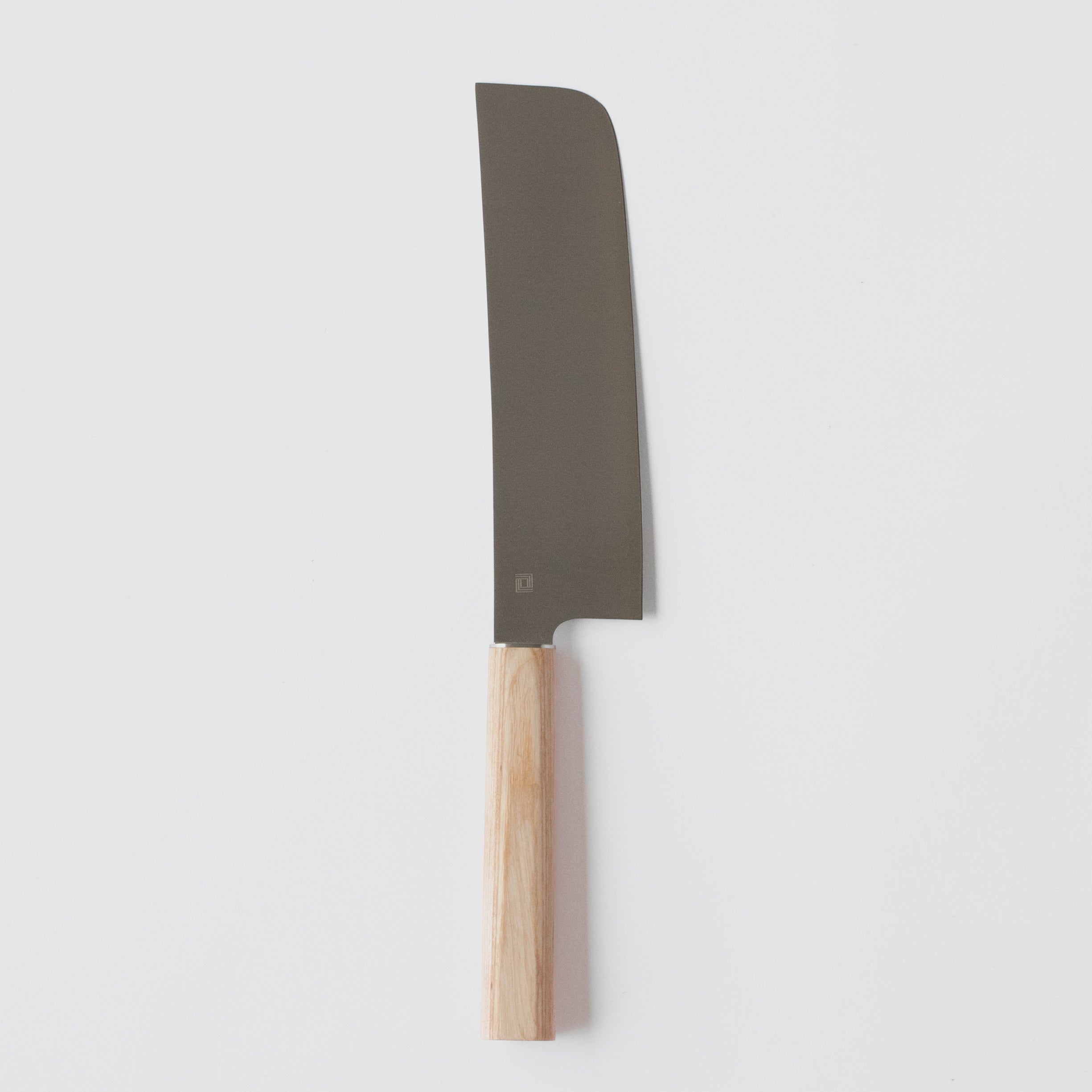 The Nakiri knife is a Japanese vegetable knife designed for chopping and slicing vegetables with its straight, double-edged blade and squared-off tip.
