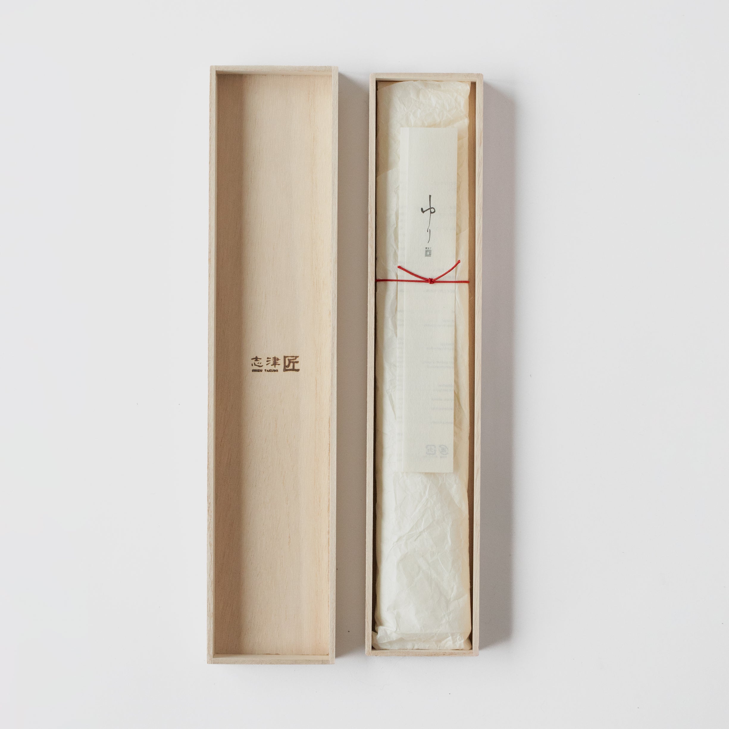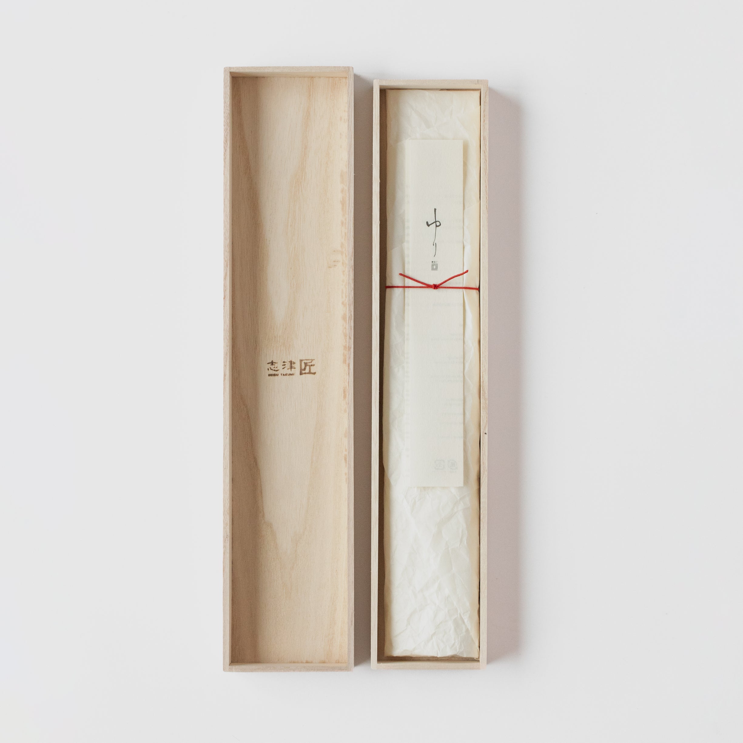 The Yuri range from Shizu Hamono is produced with three layers of steel and is known for its very thin blade. The layered construction provides rigidity, while the use of stainless steel offers resistance to corrosion. The wood handle is comfortable and overall the knives are light and well balanced. Each knife comes with its own wooden case.